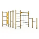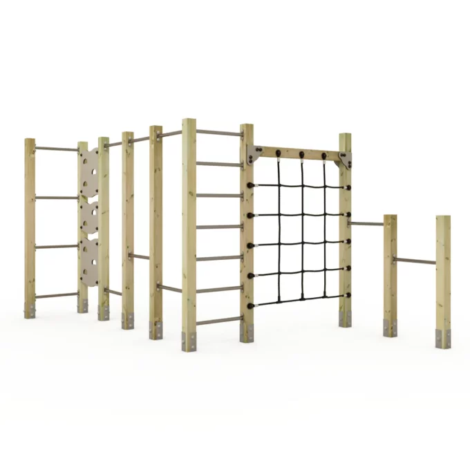 Das Wickey PRO Fit Stride ist nicht nur ein Spielgerät, sondern ein ganzes Abenteuer. Es umfasst ein strapazierfähiges Kletternetz, eine robuste Kletterwand aus 80 % recyceltem HDPE, Reckstangen sowie Sprossenwände mit langlebigen Sprossen aus Edelstahl. Diese Kombination macht das Parkour vielseitig und bietet unzählige Möglichkeiten für Spaß und Spiel.