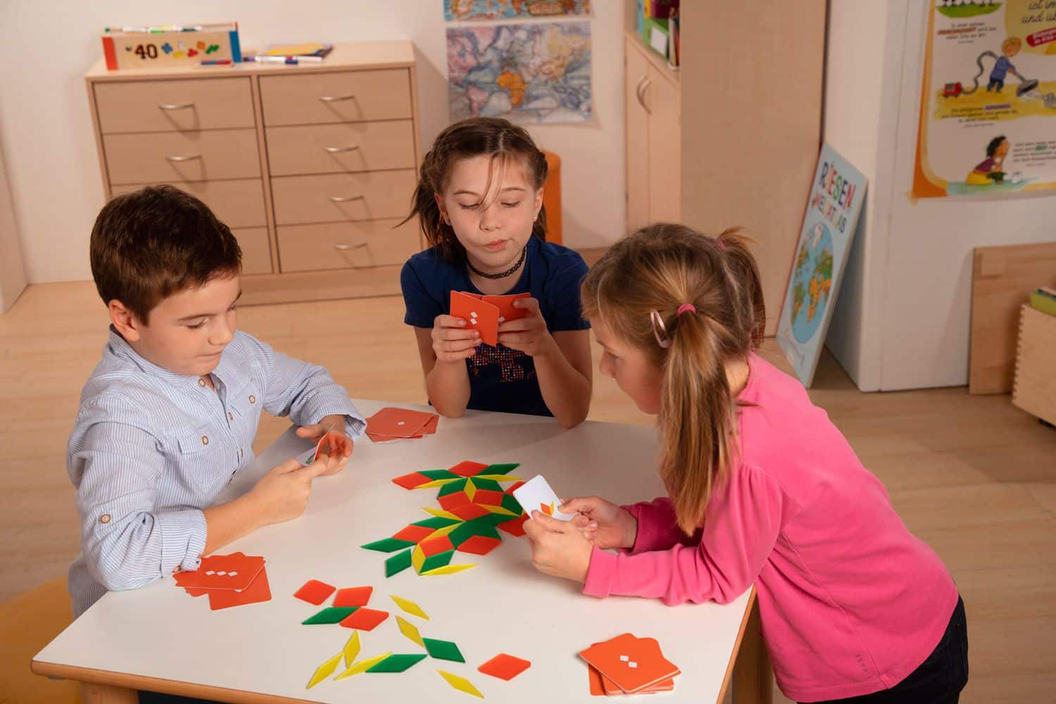 - Geometrische Aufgaben meistern: Kinder und Erwachsene schulen ihr Formenverständnis, indem sie die Rauten präzise an die vorgegebenen Muster anlegen.