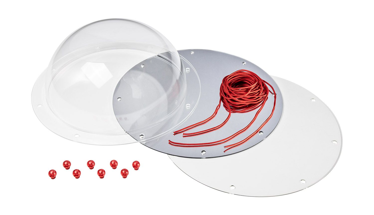 - 1 Halbkugel aus Acrylglas (Außen-Ø 44 cm, Innen-Ø 36 cm)