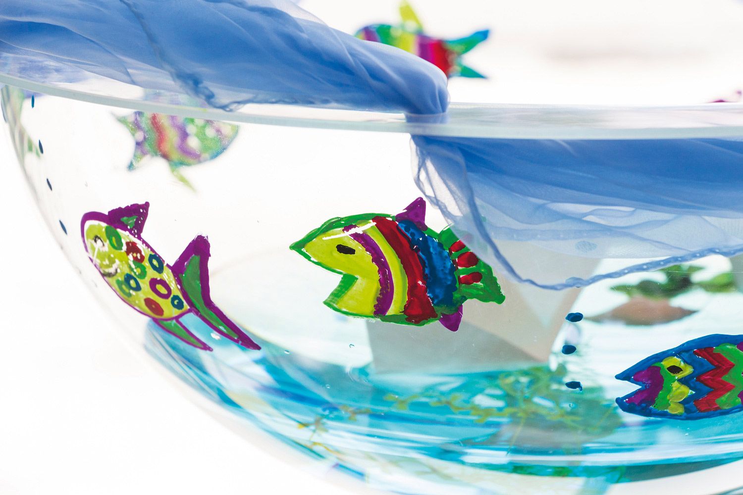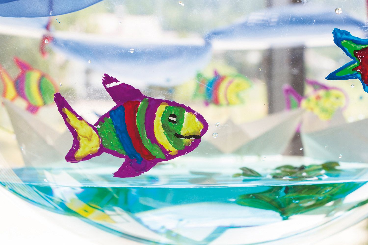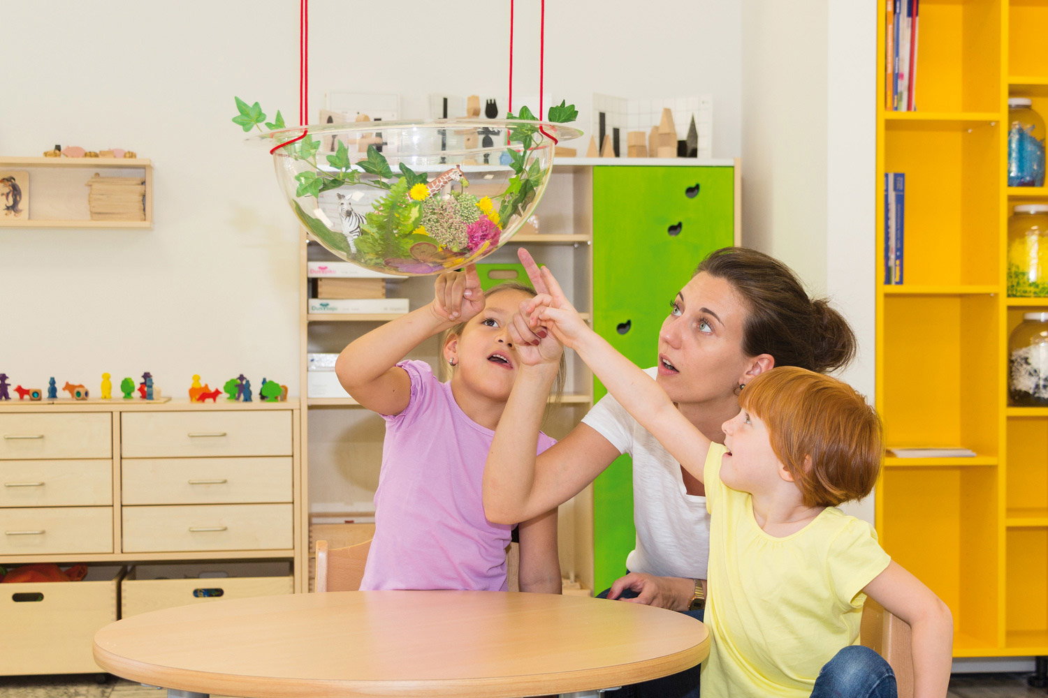 Die transparente Acryl-Halbkugel und die Scheiben bieten die perfekte Leinwand für Kreativität. Sie lassen sich mit unterschiedlichsten Materialien bearbeiten: Window Color, Fensterfolie oder abwischbare Fensterkreide verwandeln das Peladusy immer wieder neu. So kann es jahreszeitlich angepasst oder in aktuelle Lernprojekte integriert werden. - Interaktive Raumgestaltung in variabler Höhe