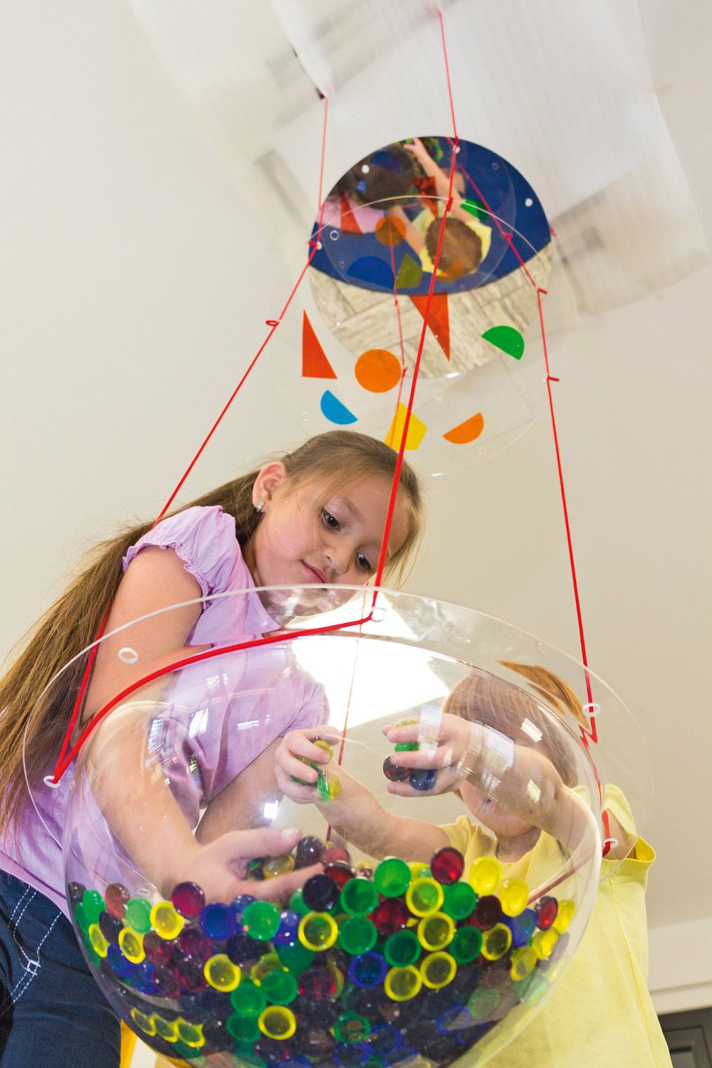 Ein Highlight des Sets ist die integrierte Spiegelplatte. Wird diese zwischen Decke und dem abgehängten Element platziert, entstehen beeindruckende optische Effekte. Kinder können von unten in die Halbkugel schauen und sich selbst oder ihre gestalteten Welten in völlig neuen Zusammenhängen sehen. Dies fördert nicht nur die Selbstwahrnehmung, sondern schult auch das Verständnis für Raum und Reflexion. - Vielseitige Gestaltungsmöglichkeiten