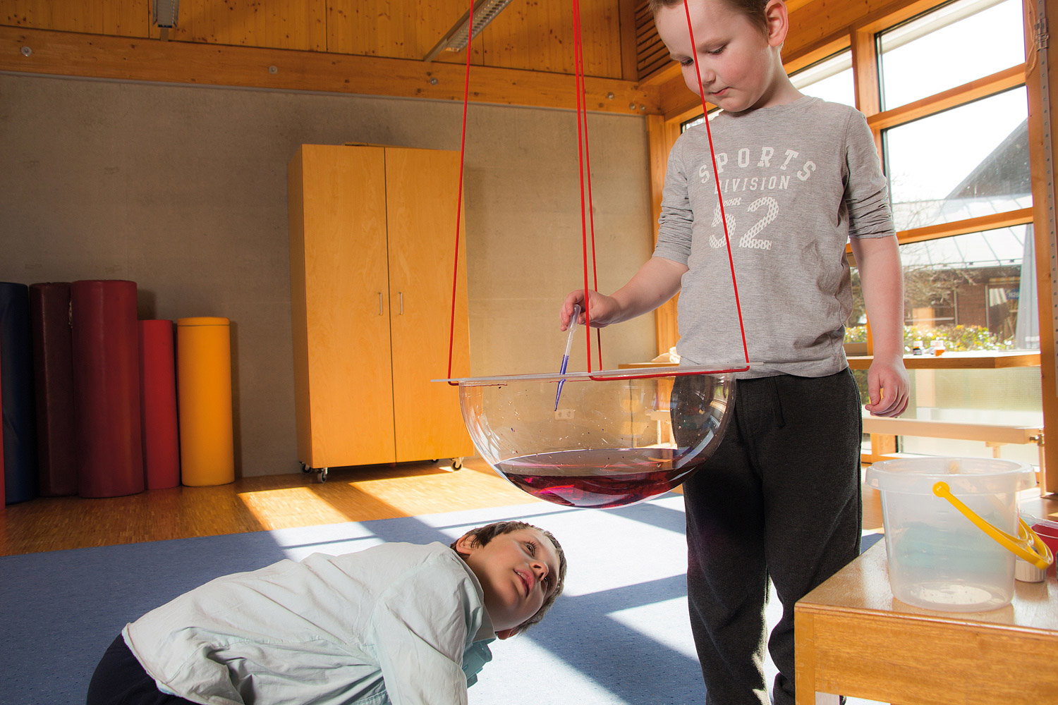 Peladusy lädt zum Experimentieren ein. Was passiert mit dem Licht, wenn es durch die bemalte Kugel fällt? Wie verändert sich das Spiegelbild, wenn ich mich bewege? Kinder werden zu Forschern ihrer eigenen Wahrnehmung. Das Element unterstützt dabei Schwerpunkte wie „Gestalten im Raum“ und „Planerisches Vorgehen“, indem Kinder sich überlegen müssen, wie ihre Gestaltung von unten oder im Spiegel wirken wird. - Robustes und sicheres Material