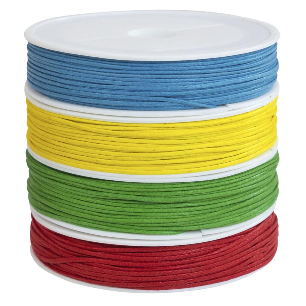 Perlenschnüre 4er-Set – 100 m gewachstes Baumwollband in leuchtenden Farben. Perfekt für Schmuck, Deko & kreatives Basteln. Robust & flexibel einsetzbar!