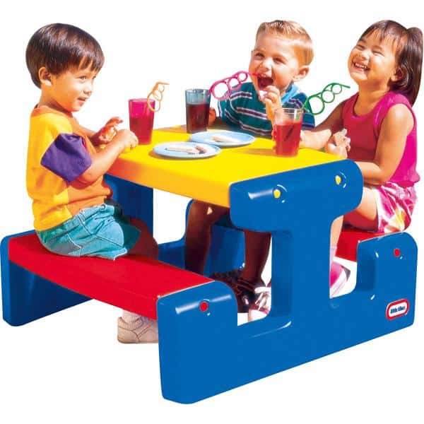 Picknicktisch – blau/rot/gelb für Kindergarten und Krippe