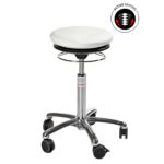 Das Aluminium-Fußkreuz mit einem Durchmesser von 500 mm bietet Stabilität und Langlebigkeit, während die leichtlaufenden Rollen (60 mm) für müheloses Bewegen im Raum sorgen. Zwei der Rollen sind mit einer Bremse ausgestattet, sodass Sie den Hocker schnell und einfach fixieren können, wenn Sie Stabilität benötigen.