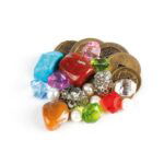 - Für kleine Schatzsucher: Ein bunter Mix aus schillernden Edelsteinen, funkelndem Katzengold, exotischen Muscheln und Münzen im Piratenstil.