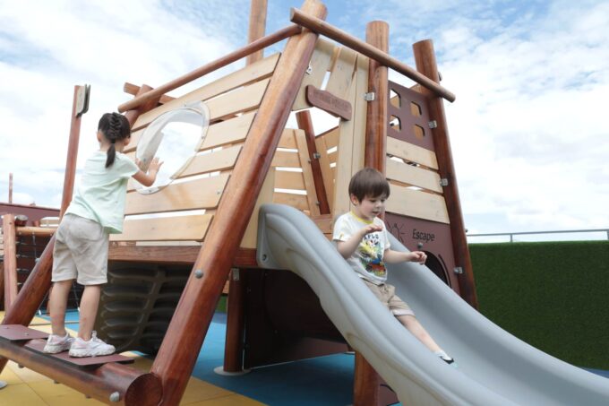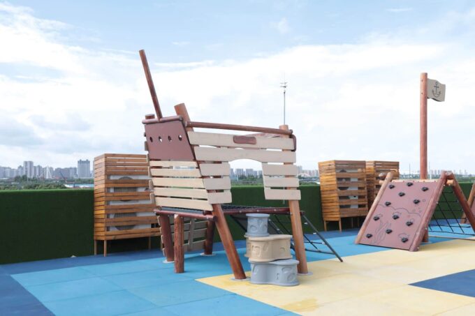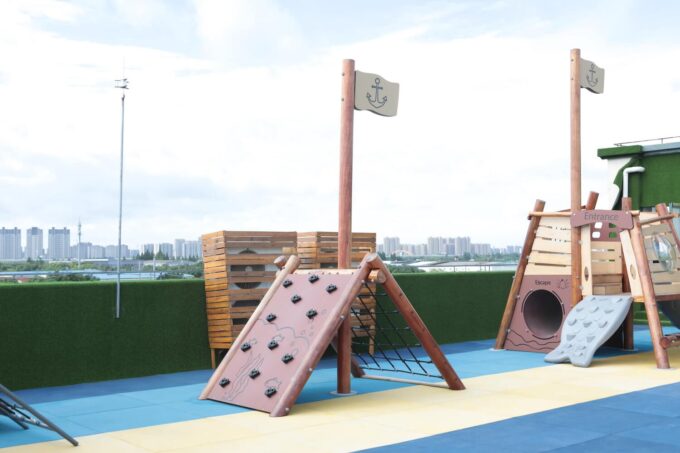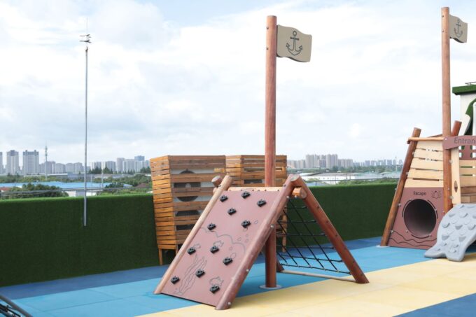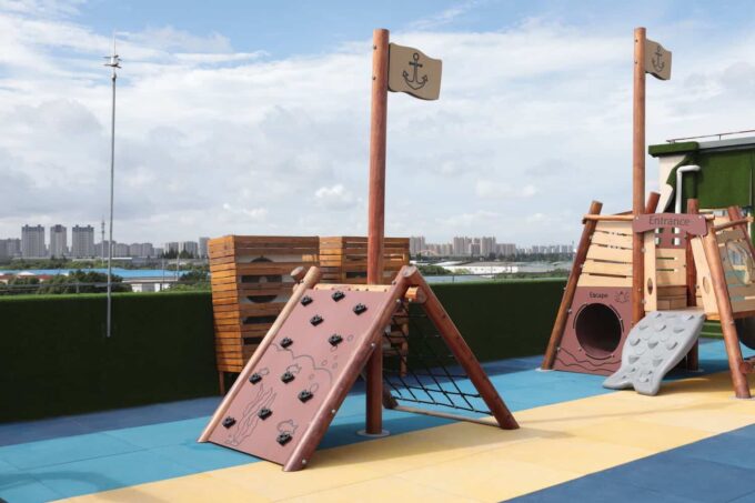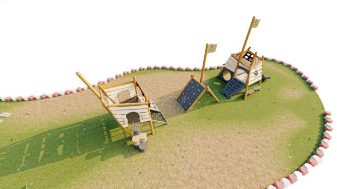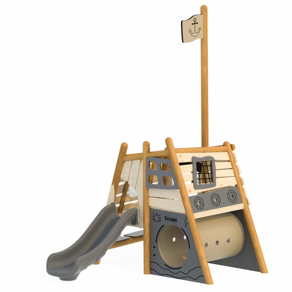 Mit diesem dreiteiligen Spielgerät erkunden die kleinen Piraten die sieben Weltmeere und begeben sich auf eine lange Reise mit vielen Abenteuern. Das Piratenschiff besteht aus drei einzelnen Spielgeräten – jedes dieser Elemente bietet den Kindern vielfältige Möglichkeiten zum Spielen und Entdecken.