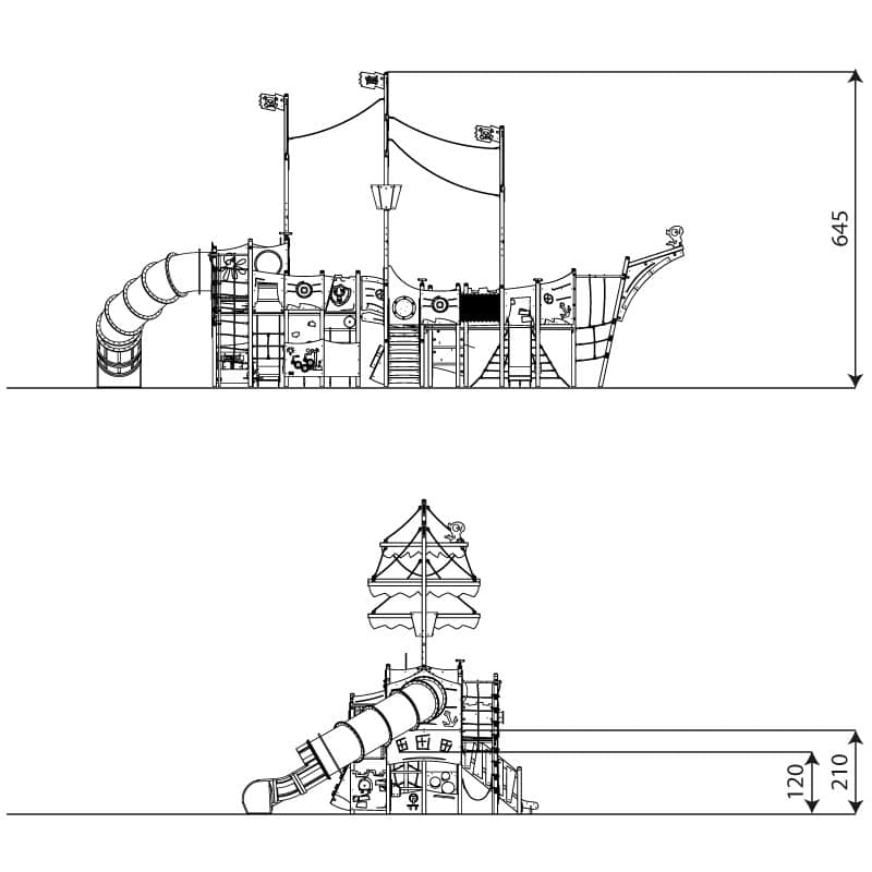 Technische Daten Piratenschiff mit 2 Rutschen und Röhrenrutsche CASTILLO 3080 von Vinci Play