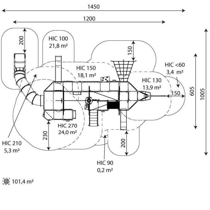 - Plattformhöhe der Rutsche: 120, 150 cm