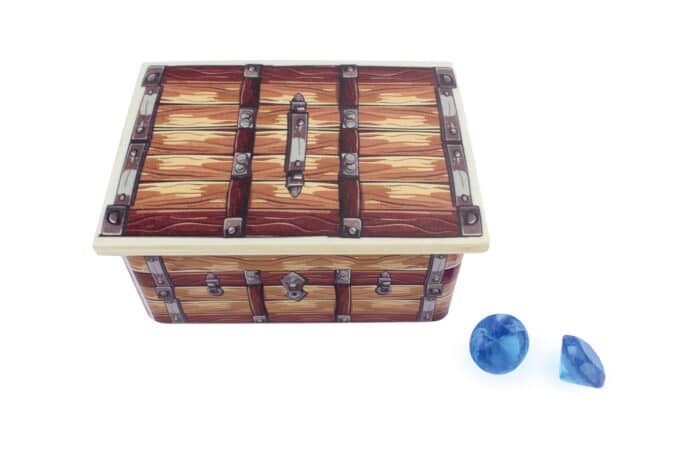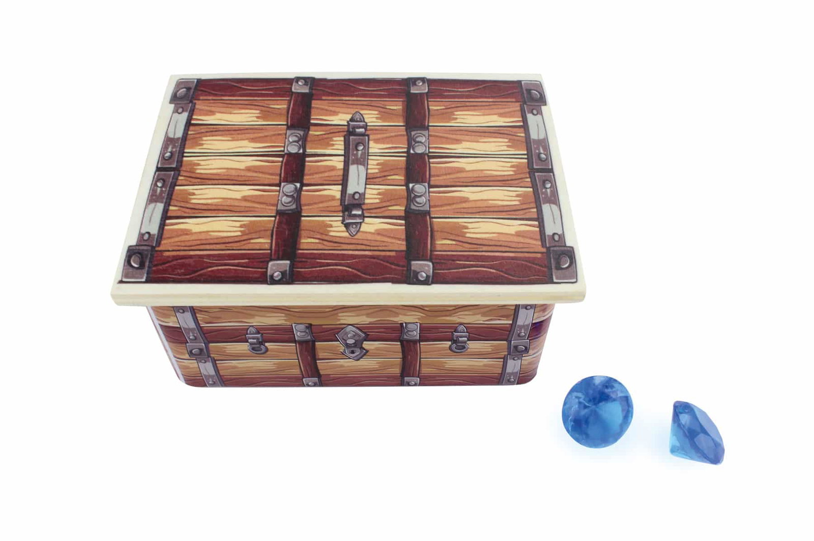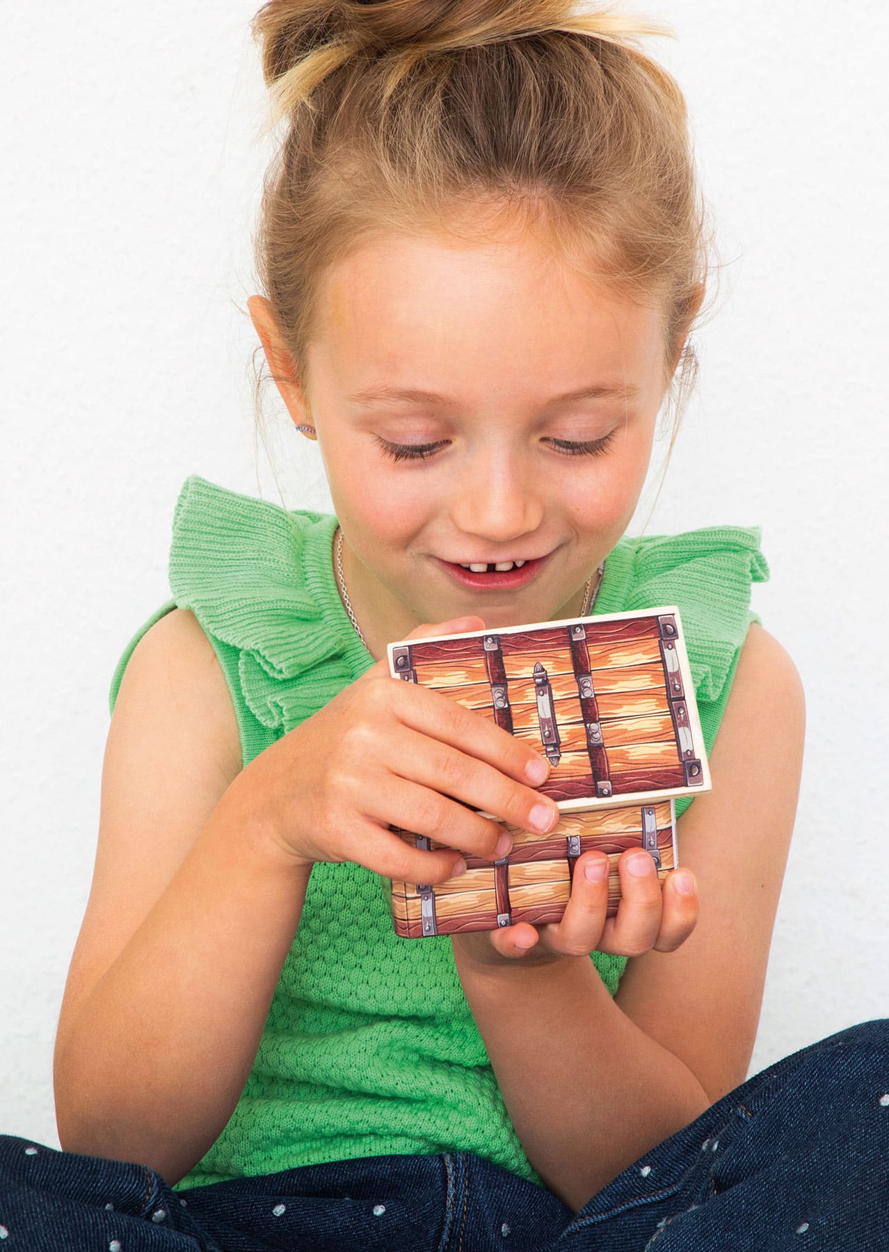 Ein Schatz, den man fühlen kann.- Taktiles Erlebnis: Die schweren Metallkisten, die glatten Holzdeckel und die funkelnden Acryl-Edelsteine bieten ein besonderes haptisches Erlebnis und heben das Spiel von reinen Papp- und Plastikspielen ab.