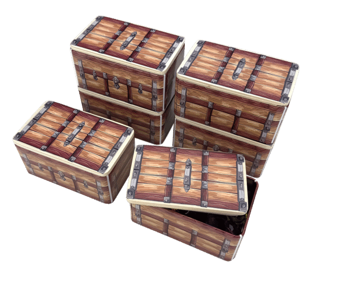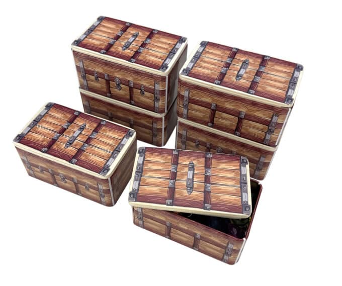 - 6 Schatzkisten aus Metall mit Holzdeckeln und Filz-Einlegern