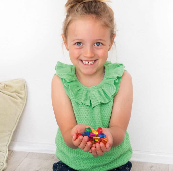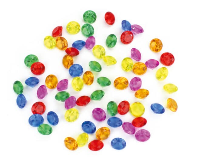 - 66 bunte Edelsteine (in 6 Farben) aus Acryl