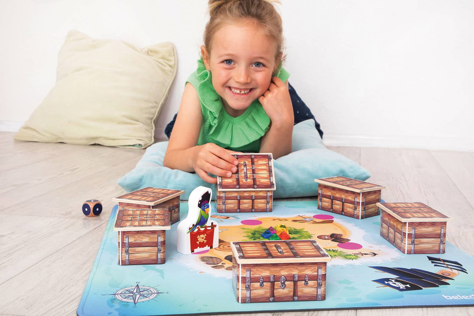 Leinen los und auf zur Schatzinsel! Mit dem spannenden Abenteuerspiel „Piratico“ werden Kinder zu mutigen Seeräubern auf der Jagd nach verborgenen Reichtümern. Auf einer geheimnisvollen Insel sind sechs Schatztruhen versteckt, prall gefüllt mit funkelnden Edelsteinen. Doch nur die cleversten Piraten, die sich gut merken können, welche Schätze sich in welcher Truhe verbergen, werden am Ende die Beute für sich beanspruchen. Begleitet von ihrem treuen Papagei Pipo stürzen sich die Spieler in ein Abenteuer, das Gedächtnis, Wahrnehmung und ein Quäntchen Glück auf die Probe stellt.