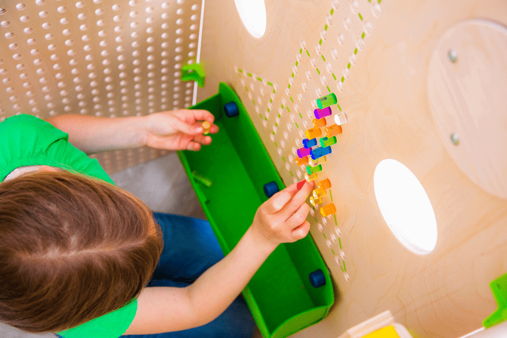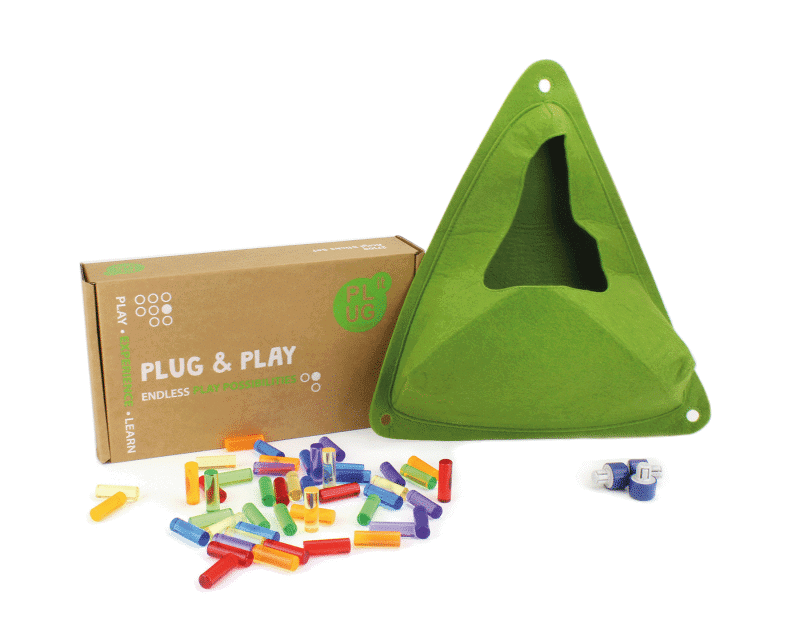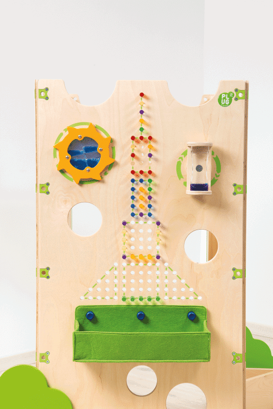 Das PLUG it „Acryl Sticks Set“ hilft nicht nur bei der Gestaltung farbenfroher Kunstwerke, sondern eignet sich auch hervorragend zur Schulung der Farbenlehre. Die Rückseite des Activity Hauses enthält eine markierte Raketenform, die zum Nachstecken animiert. Darüber hinaus können Kinder mit dem Raster auch erste mathematische Zahlenreihen und Folgen üben.