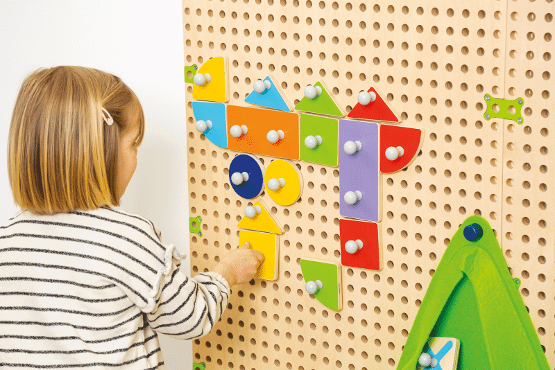 Die hochwertigen Elemente sind ideal für kleine Hände und bieten so viele Möglichkeiten für das kreative Stecken von Formen. Der Spielspaß fördert gleichzeitig die motorischen Fähigkeiten und regt die Kreativität an.
