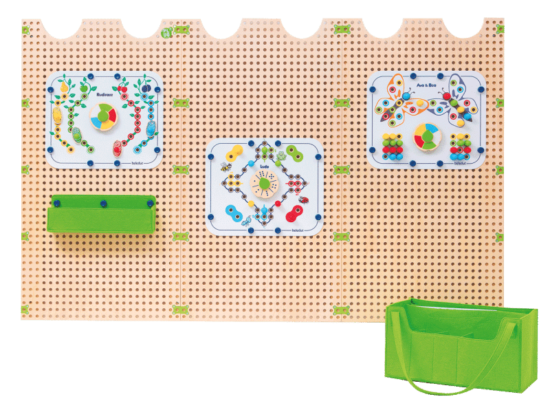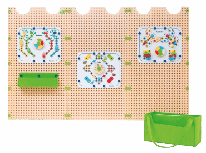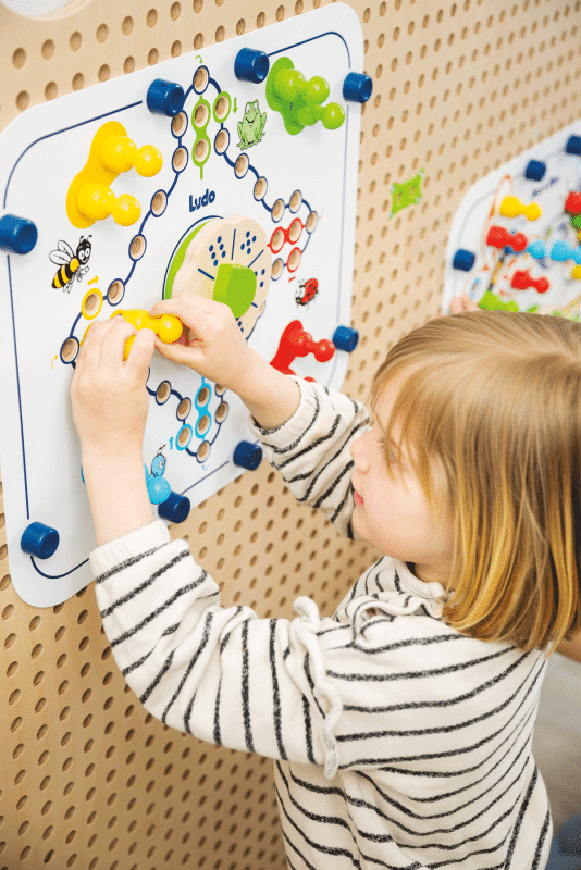 Das PLUG IT System fördert nicht nur die Kreativität, sondern auch die sozialen Fähigkeiten der Kinder. Mit den 3 Basisplatten und dem intuitiven Montagesystem können die Kinder die Wandgestaltung selbst in die Hand nehmen. Sie können alleine kreativ arbeiten oder gemeinsam als Gruppe mit den integrierten Spiele-Sets Ludo, Rudirace und Ava & Bea interagieren. Das besondere Drehrad ersetzt den Würfel, sodass Kinder auf ihrer eigenen Höhe spielen können und die Spiele von der Tisch- zur Wandebene verlagert werden.