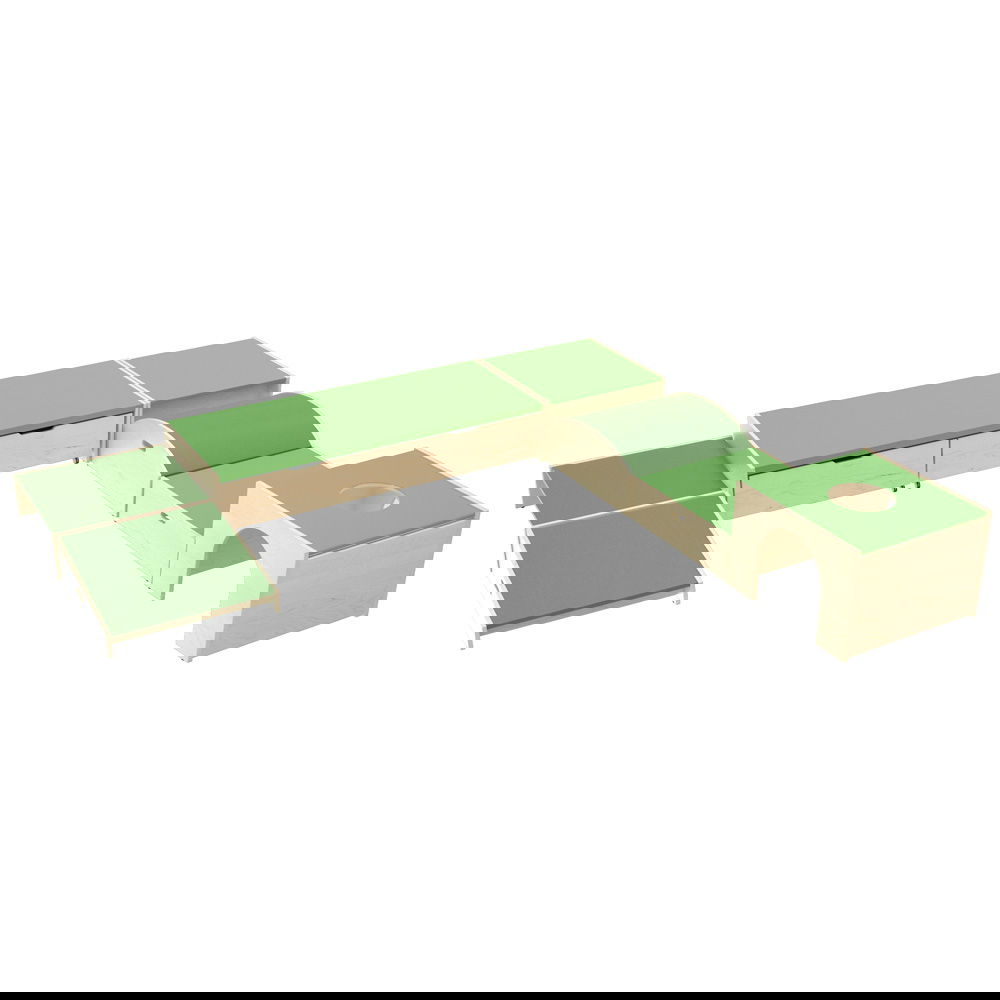 Verwandeln Sie jeden Raum in eine dynamische Spiel-, Lern- und Bewegungslandschaft. Unser 7-teiliges Podest-Set in ansprechenden Grün- und Hellgrün-Tönen ist ein wahres Multitalent, das die Kreativität von Kindern anregt und gleichzeitig Struktur und Ordnung schafft. Die einzelnen Elemente sind so konzipiert, dass sie sich perfekt ergänzen und unzählige Kombinationsmöglichkeiten bieten. Ob als große Bühne für die nächste Theatervorführung, als Tribüne für kleine Zuschauer, als praktisches Podium für den Morgenkreis oder als abenteuerliche Treppenlandschaft, die zum Klettern und Balancieren einlädt – Ihrer Fantasie sind keine Grenzen gesetzt.
