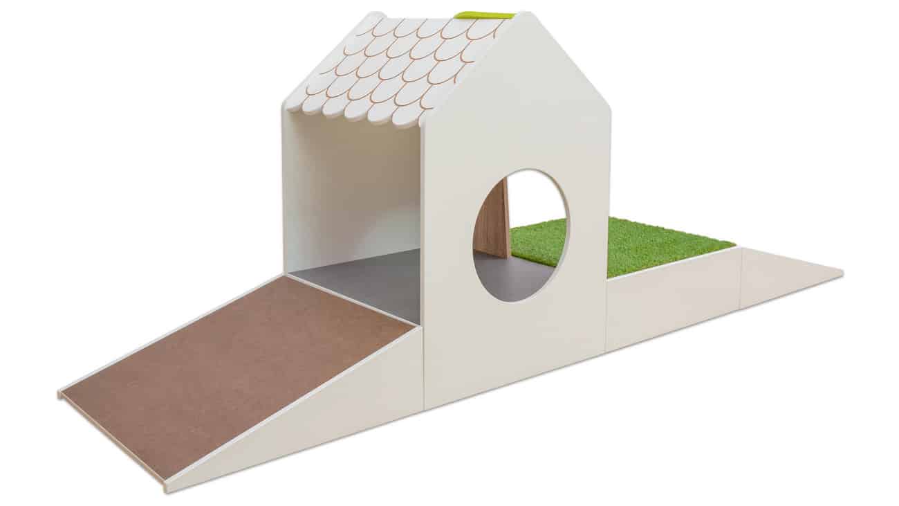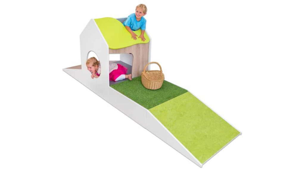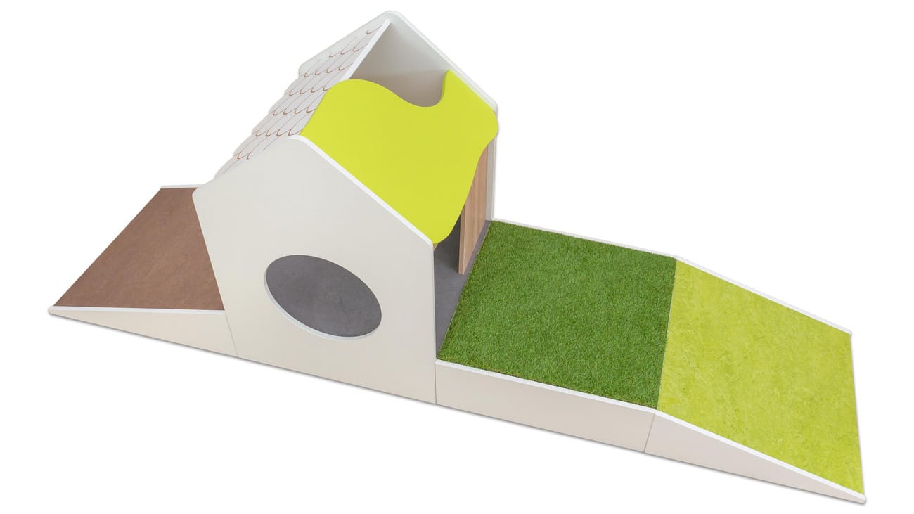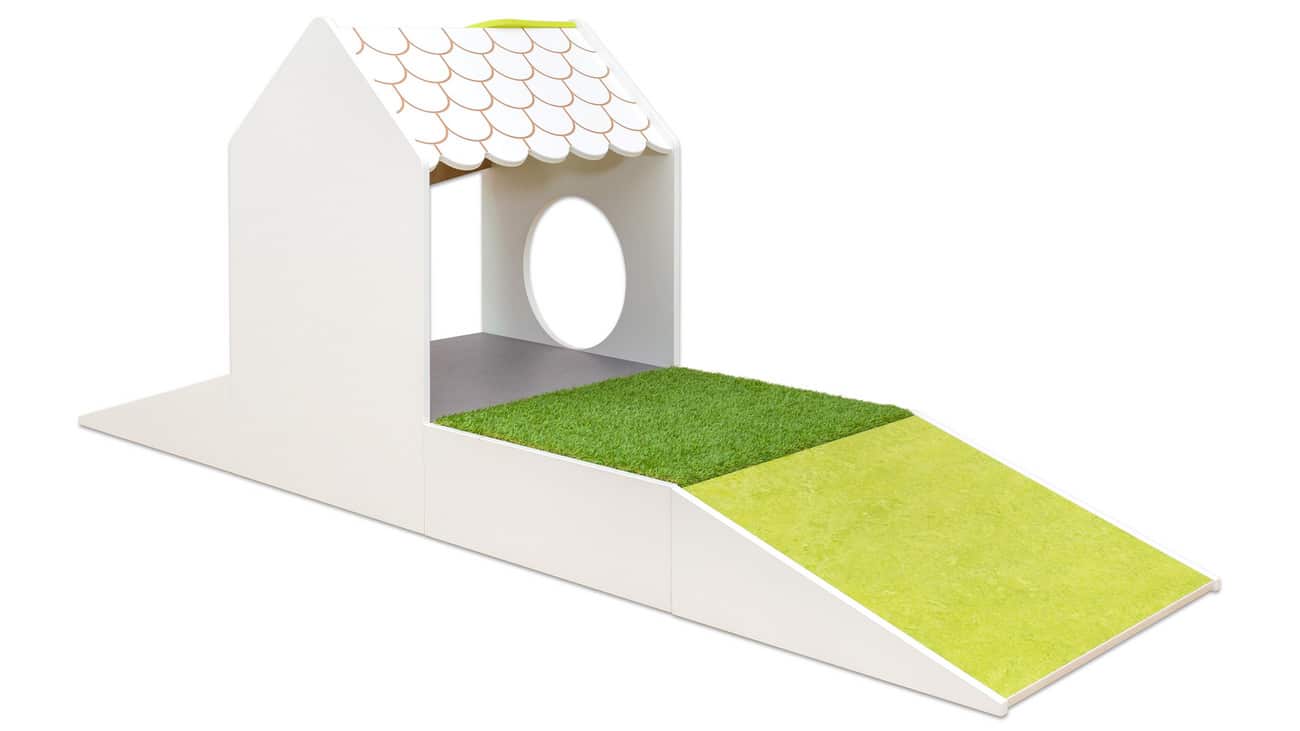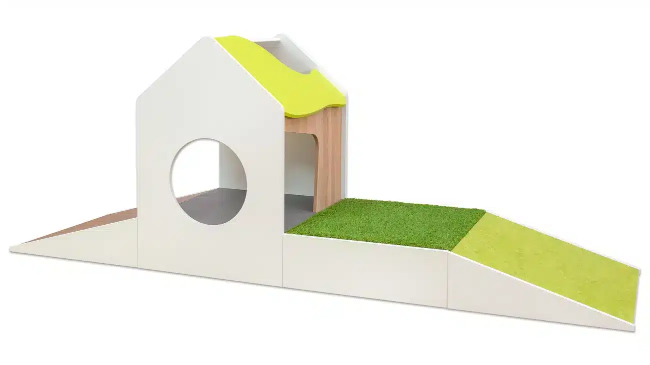 Das Podeste-Set besteht aus vier herausfordernden Podesten, die zum Klettern, Rutschen, Krabbeln und Verstecken einladen. Eines der Highlights ist das Premium-Haus, das zur kleinen Ruheoase wird – der perfekte Rückzugsort für Kinder mit einem guten Buch oder als Kulisse für spannende Rollenspiele. Das Podest mit Kunstgrasbelag fördert nicht nur den Tastsinn, sondern bringt zudem ein Stück Natur ins Spielzimmer, das die Fantasie der Kinder anregt.