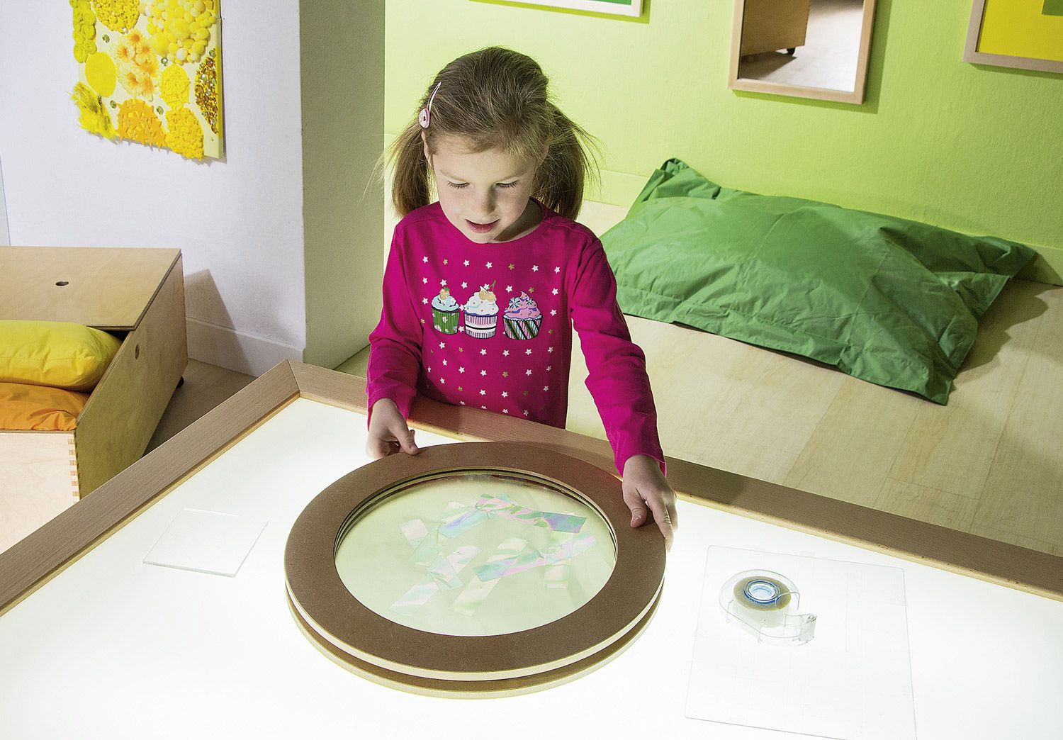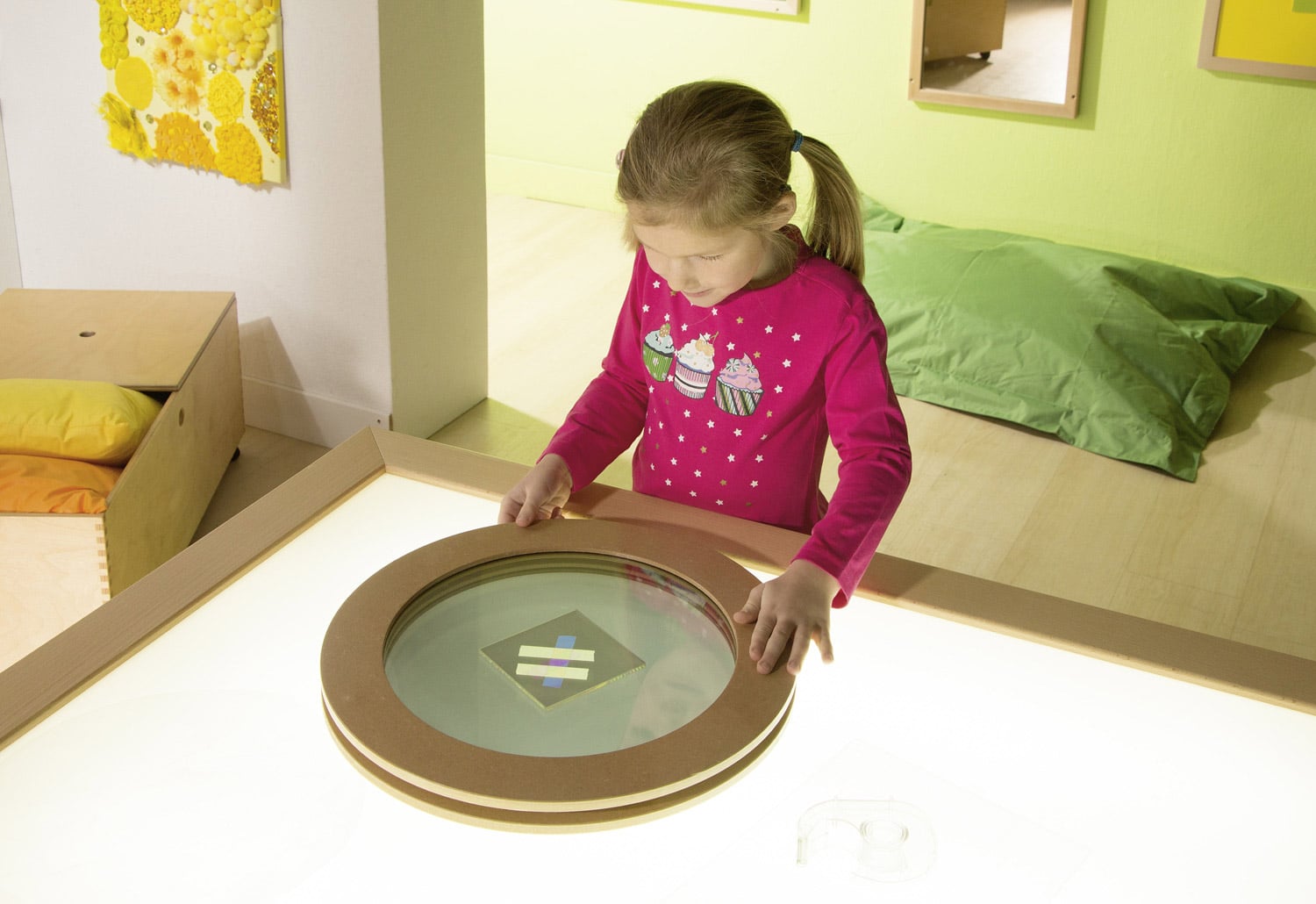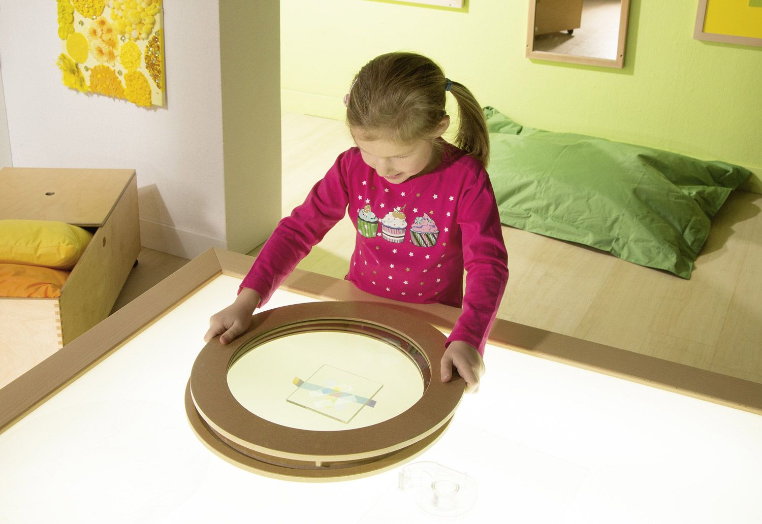 - Experimentierfreude wecken: Kinder können durch das Drehen und Kombinieren der Acrylscheiben sowie durch die Wahl der Materialien immer neue Effekte erzielen.