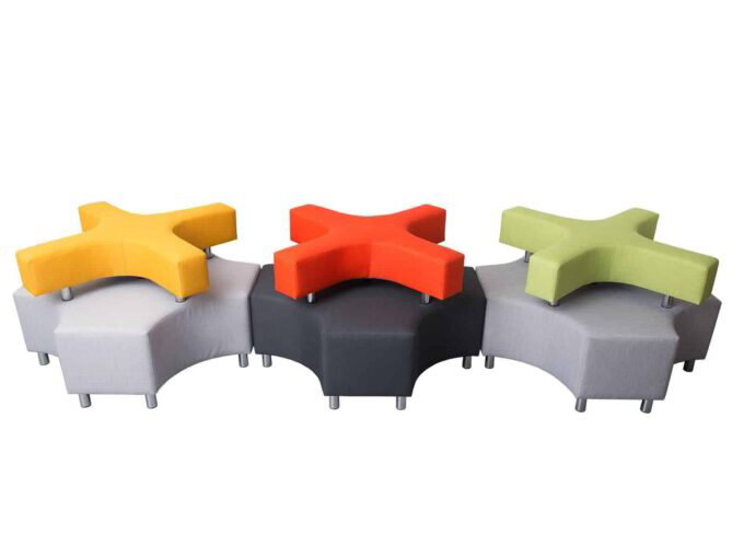 Verwandeln Sie Schulflure, Pausenräume und Wartebereiche in lebendige, stilvolle und sichere Begegnungsorte mit dem Sitzmodul Saturn. Dieses außergewöhnliche Sitzmöbel kombiniert ein futuristisches, auffälliges Design mit höchster Funktionalität und kompromisslosen Sicherheitsstandards. Die markante X-förmige Rückenlehne ist nicht nur ein optisches Highlight, sondern schafft auch vier komfortable, separate Sitzplätze in einem einzigen Modul. Erhältlich in diversen modernen Farben, ermöglicht Saturn die Gestaltung flexibler und einladender Sitzlandschaften, die perfekt auf Ihre Räumlichkeiten zugeschnitten sind. Dank des extrem strapazierfähigen und schwer entflammbaren Bezugsstoffes nach Brandschutzklasse B1 ist dieses Modul die ideale Wahl für alle hochfrequentierten öffentlichen Bereiche, in denen Design und Sicherheit Hand in Hand gehen müssen.