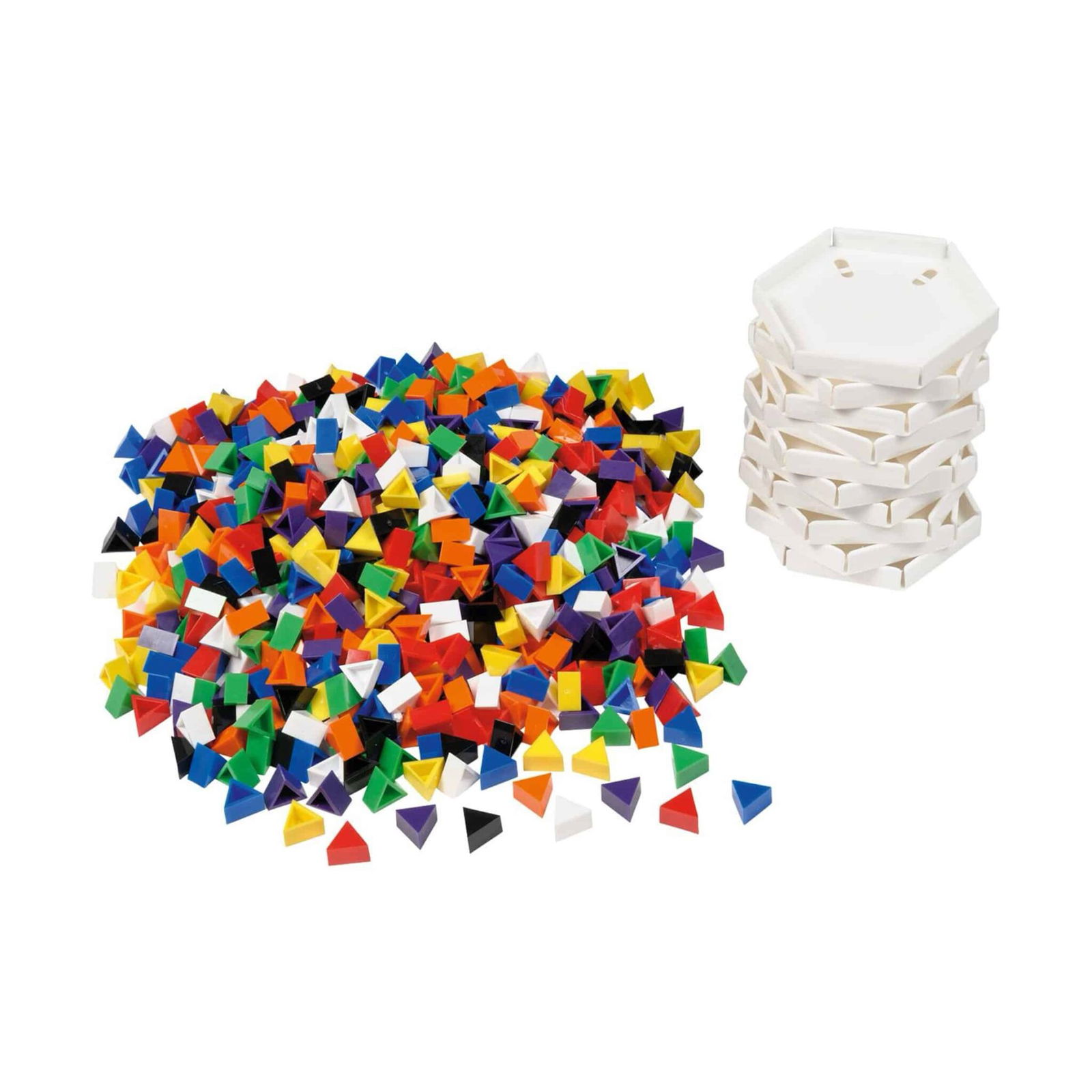 Egal, ob Sie die Prismos für gezielte pädagogische Zwecke einsetzen oder die Fantasie der Kinder entfesseln möchten – sie sind der ideale Begleiter. Mit acht leuchtenden Farben, robustem Kunststoffmaterial und einer durchdachten Ergonomie lassen sich unzählige Formen kreieren. Die kleinen Dreiecke (Prismos) ermöglichen, dank ihrer perfekten Proportionen (3 Prismos ergeben ein Trapez), die Erstellung komplexer Designs und Kunstwerke.