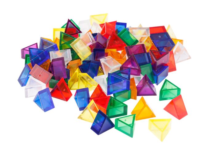 • Spiel mit Lichteffekten: Die Transparenz der Prismos ermöglicht spannende Licht- und Farbeffekte, besonders wenn sie auf Leuchttischen verwendet werden.