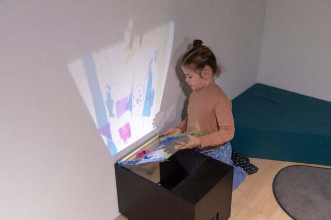 - Kreative Kunstwerke gestalten: Ob bunte Materialien, die magisch aufleuchten, oder fantasievolle Schattenszenen – die Projektorbox fördert auf spielerische Weise die künstlerische Gestaltung.