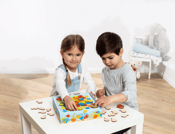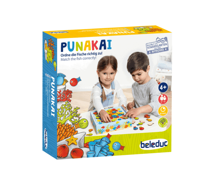 Tauchen Sie ein in die spannende und farbenfrohe Welt von Punakai! Dieses aufregende Spiel für Kinder ab 4 Jahren bringt jede Menge Spaß und fördert gleichzeitig die Farberkennung und Feinmotorik. Wer wird als Erster seine bunten Fische erfolgreich ablegen und die Gefahren des Ozeans überlisten?
