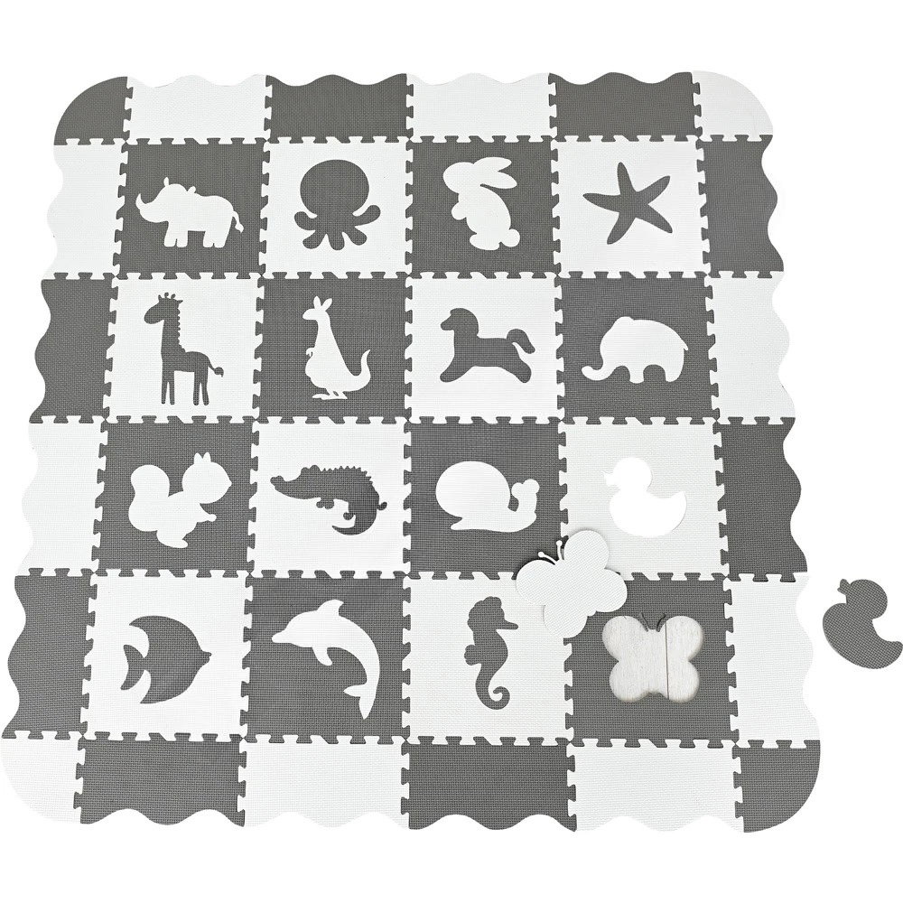 Jede der 16 Bodenfliesen beherbergt ein anderes Tier, das als Puzzleteil herausnehmbar ist. Dies fördert die Feinmotorik, die Hand-Auge-Koordination und die Formenerkennung. Kinder lernen spielerisch verschiedene Tiere kennen und können ihrer Fantasie freien Lauf lassen. - Maximaler Schutz und Komfort