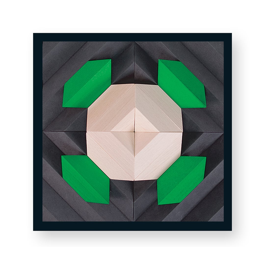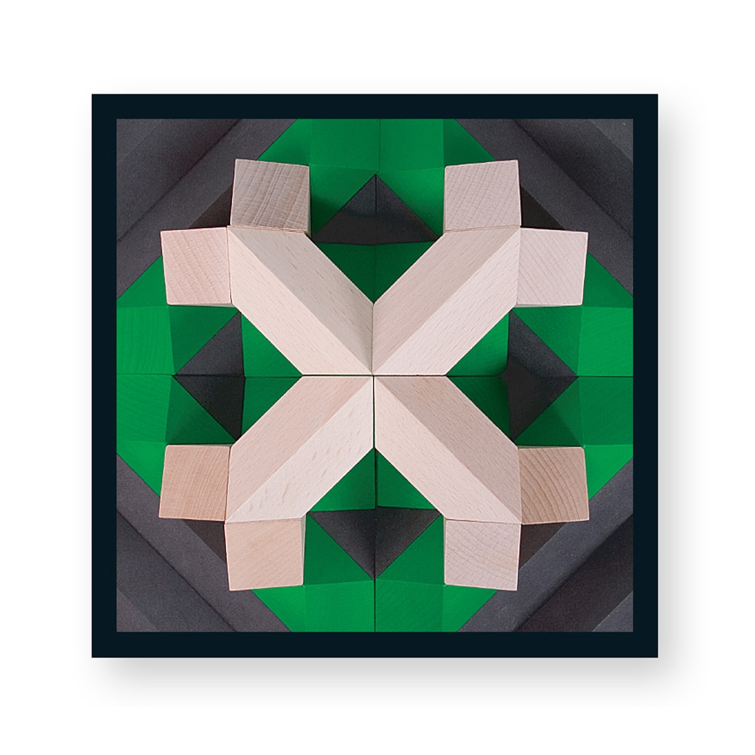 PYROM Grün ist mehr als nur ein Baukasten. Mit seinen vier quadratischen Aufbauplatten und den vierzig farbigen Bausteinen ermöglicht es Kindern und Erwachsenen, faszinierende geometrische Strukturen, Reliefs und Pyramiden zu erschaffen. Das Drehen der Aufbauplatten eröffnet immer wieder neue Spielmöglichkeiten und fördert somit die Kreativität und das logische Denken.