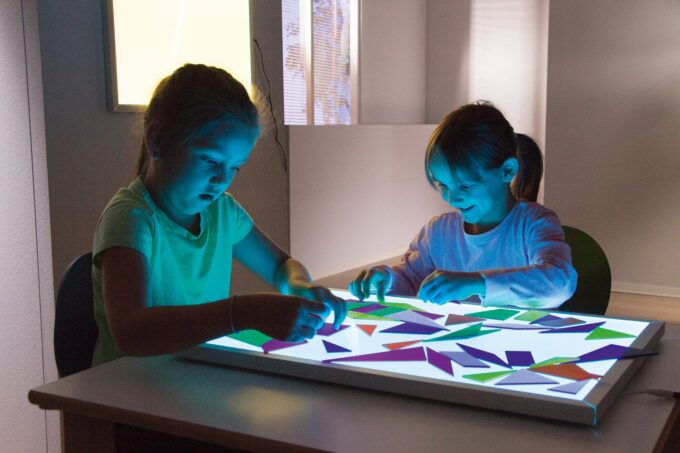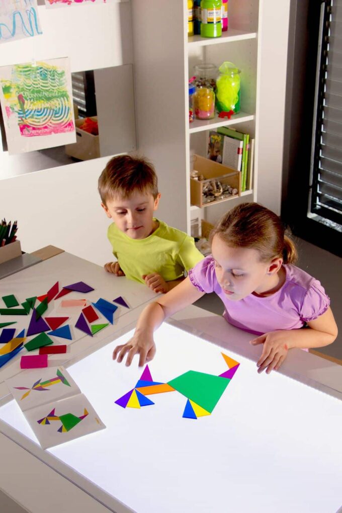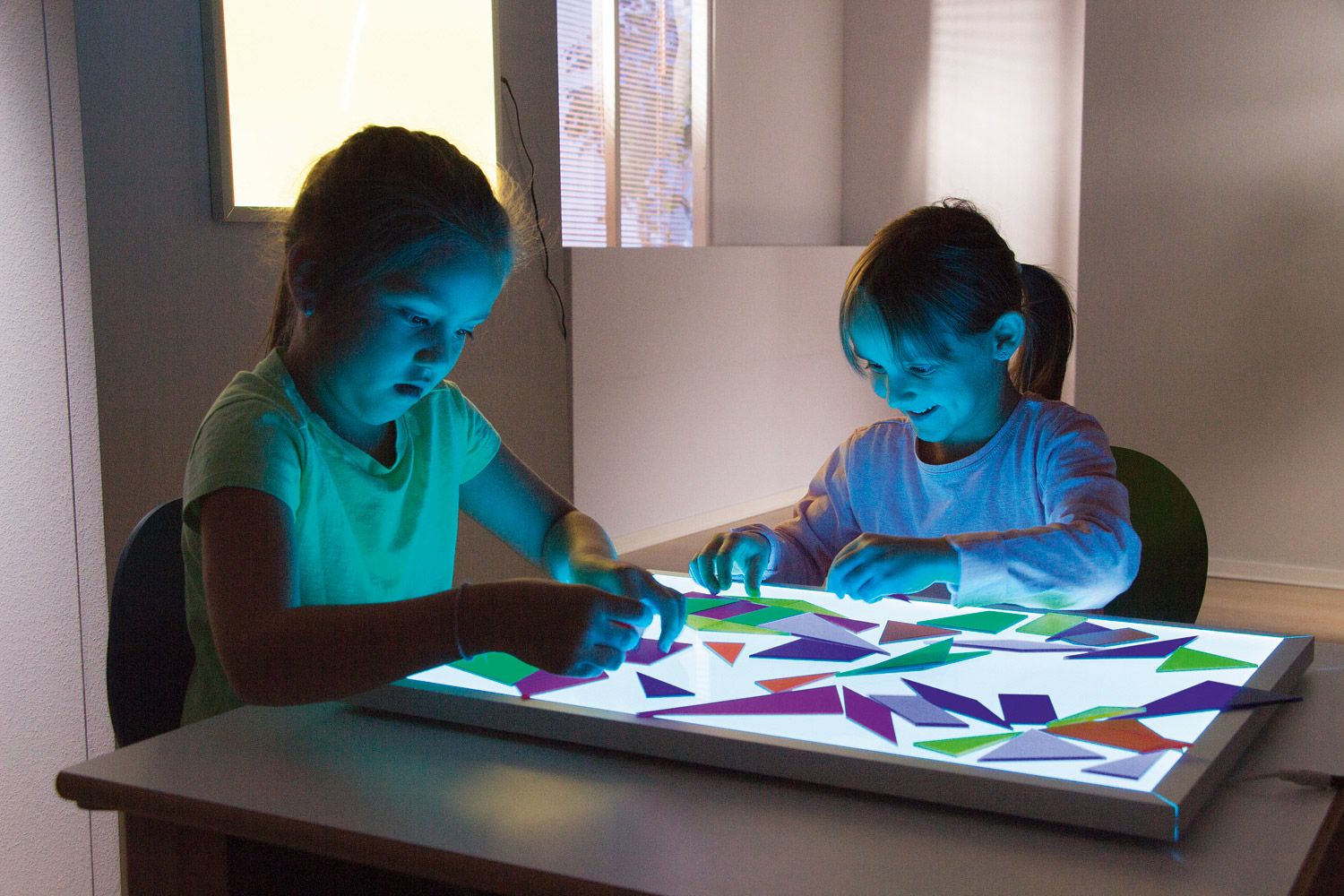 - Kreatives Spielen mit Licht: Durch die Kombination mit der Lichtplatte (102 688) können Kinder die Formen gegen das Licht halten und verschiedene Farbmischungen und Schatteneffekte erforschen. Dies macht das Lernen noch spannender und interaktiver!