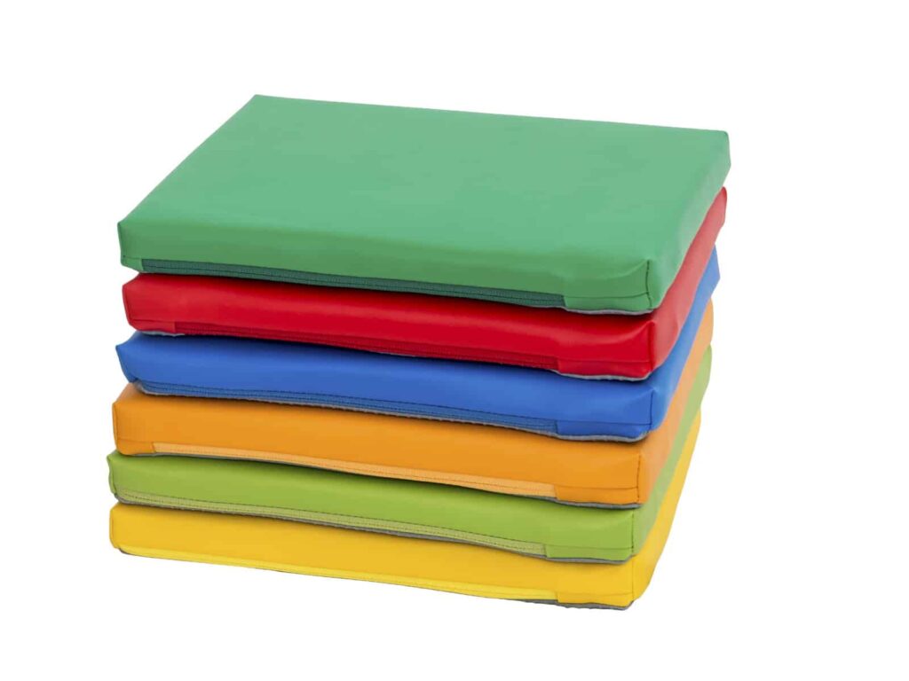 Quadratische Sitzkissen „Regenbogen“ – 6 Stück für Kitas, Krippen und Kindergarten