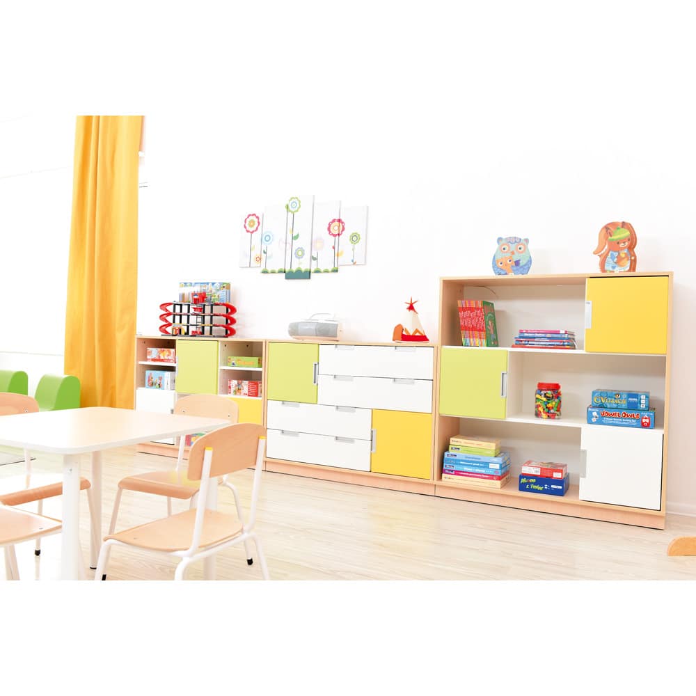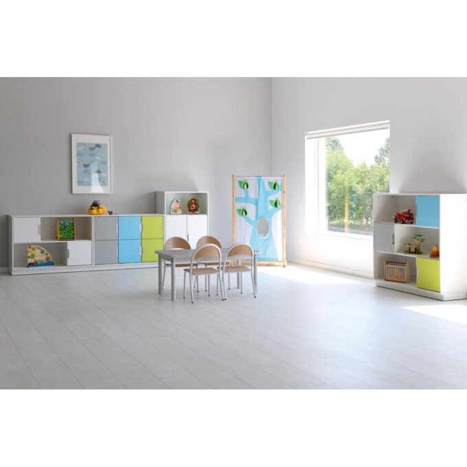 Der Quadro – Asymmetrischer Schrank L, Breite: 116 cm bringt eine frische und dynamische Note in Ihre Einrichtung. Perfekt für Kindergärten, Schulen und Zuhause, lockert die asymmetrische Fächeraufteilung jede Schrankfront auf und bietet vielfältige Gestaltungsmöglichkeiten.
