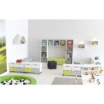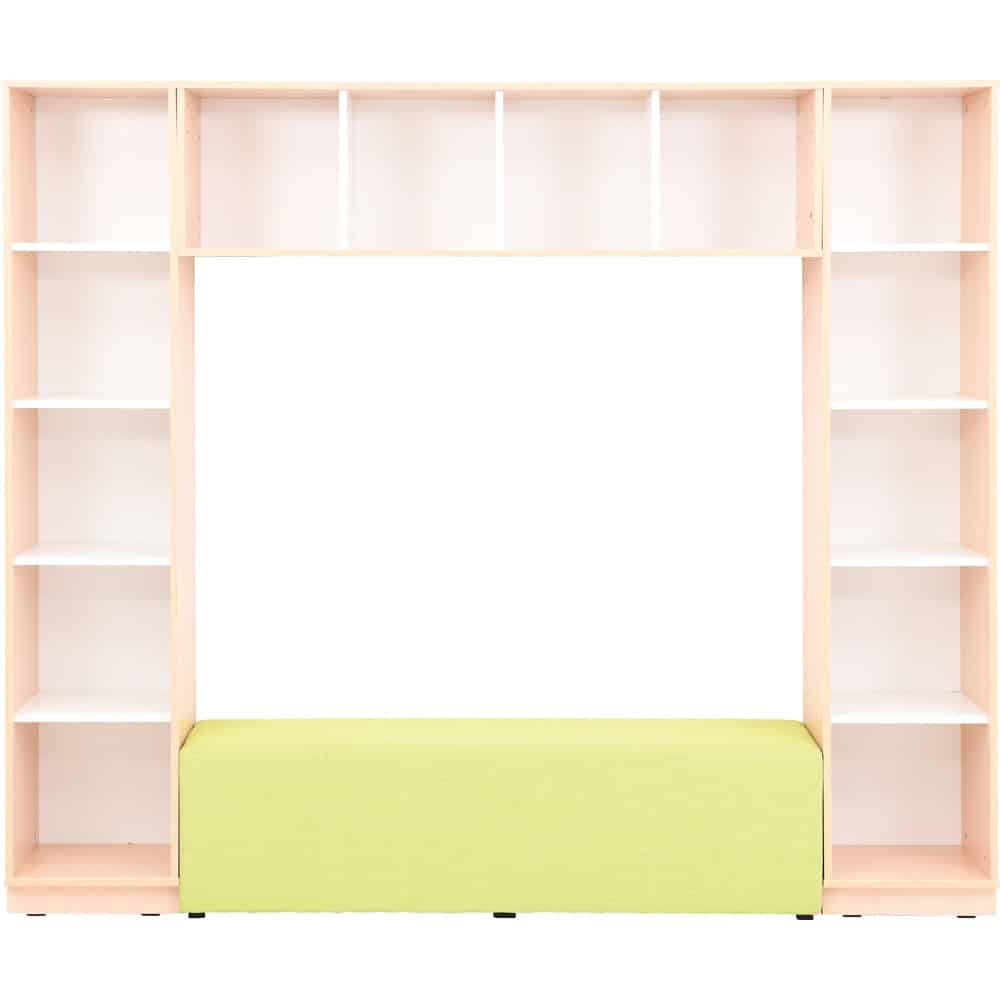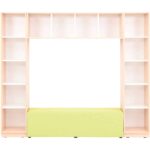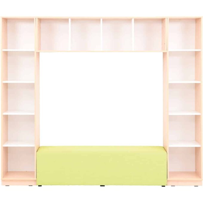 Die „Quadro“-Bücherecke: Ein Paradies für junge Buchliebhaber. Diese Ecke bietet reichlich Stauraum für Bücher aller Größen – ideal für die Riesen unter den Lieblingsgeschichten sowie für die kleineren Schätzchen. Zwischen den Bücheraußenregalen findet sich eine kuschelige Leseecke, die mit Polstern und Kissen (Artikel 101786, 101788, 101790, 101352-101356, 101638, 101362-101366, 101644, separat erhältlich) bestückt werden kann, perfekt für ungestörtes Schmökern. Stimmungsvolles Leselicht wird durch eine dimmbare, farbveränderbare LED-Leiste gewährleistet. Beachten Sie bitte, dass dieser Schrank an der Wand montiert werden muss; das nötige Befestigungsmaterial ist inklusive. Es besteht aus: