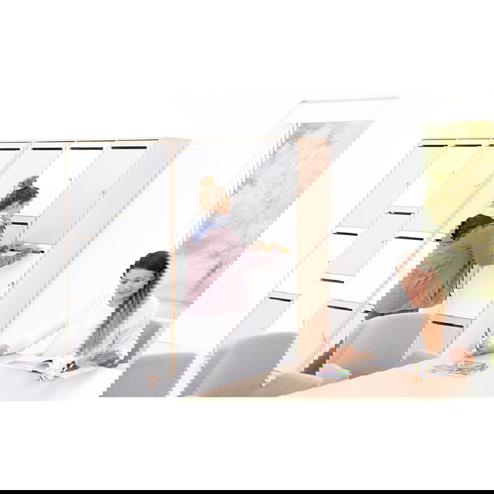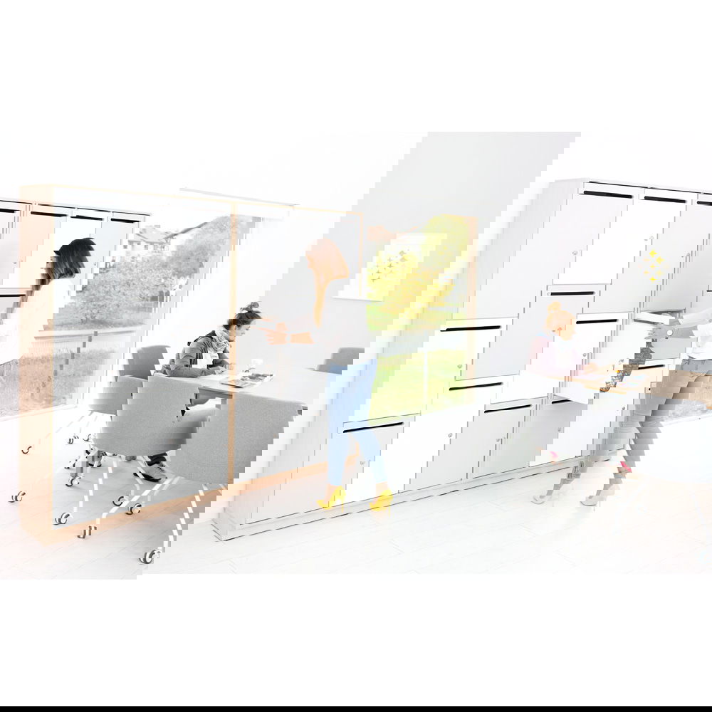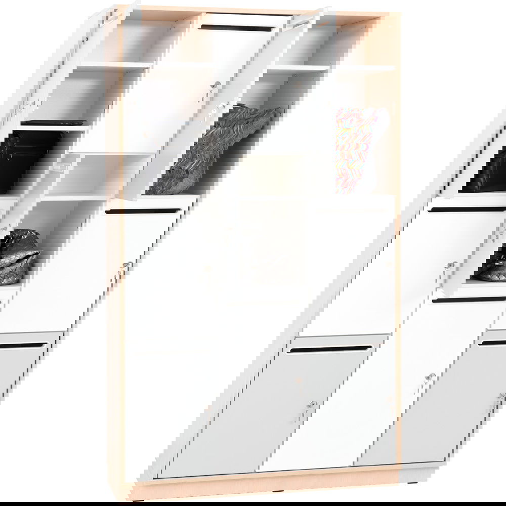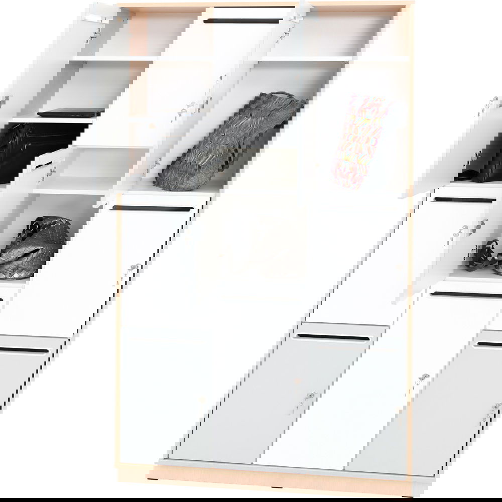 In einem lebhaften Kindergarten- oder Schulalltag ist ein persönlicher Rückzugsort für Kinder und pädagogische Fachkräfte von großer Bedeutung. Ein eigener, sicherer Platz für Rucksäcke, Wechselkleidung, wichtige Dokumente oder private Wertgegenstände schafft nicht nur Ordnung im Raum, sondern auch Vertrauen. Genau für diesen Anspruch haben wir den Quadro Eigentumsschrank mit neun besonders großen Fächern entwickelt. Dieses durchdachte Möbelstück bietet Ihnen eine zuverlässige Lösung, um persönliches Eigentum strukturiert und geschützt aufzubewahren. Die beruhigende Farbkombination der weißen und grauen Türen fügt sich harmonisch in jede moderne Einrichtung ein und unterstützt eine aufgeräumte, konzentrierte Atmosphäre.