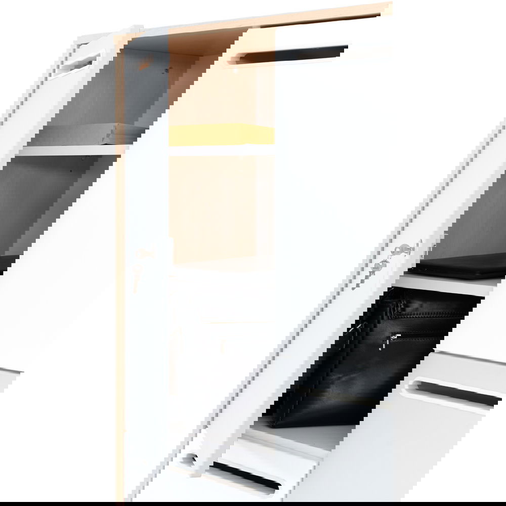 Jedes der neun Fächer ist separat abschließbar. Das gibt Kindern wie auch Erwachsenen das beruhigende Gefühl, ihre Wertsachen, großen Taschen oder Arbeitsmaterialien absolut sicher zu verstauen. Ein solcher privater Raum fördert das Verantwortungsbewusstsein der Kinder für ihre eigenen Dinge. Dank der enormen Fachhöhen von 54,5 und 74 Zentimetern finden selbst voluminöse Rucksäcke oder lange Jacken problemlos Platz. - Praktische 180-Grad-Türen für mehr Sicherheit im Raum