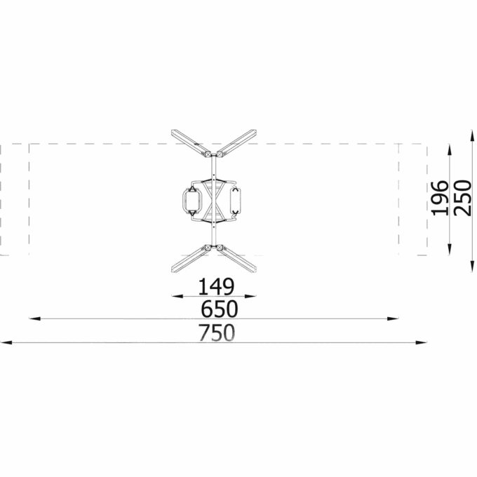 - Sicherheitsbereich: 196 x 750 cm (Fläche: 15 m²)