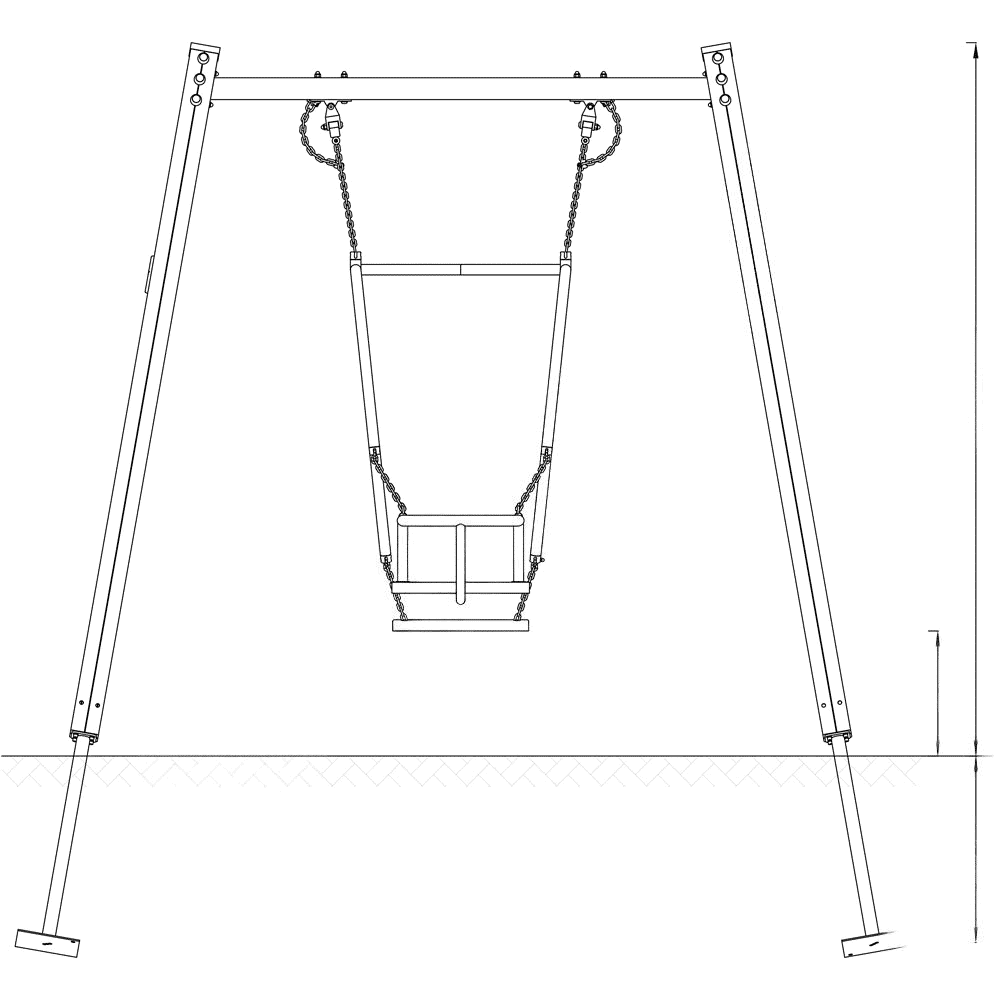 Die Quadro H Einfachschaukel beeindruckt mit ihrer robusten und stabilen Bauweise. Hergestellt aus hochwertigen Materialien, garantiert diese Schaukel eine lange Lebensdauer. Sie ist sowohl mit Holzpfosten (EPZ) als auch mit Metallpfosten (MPN) erhältlich: