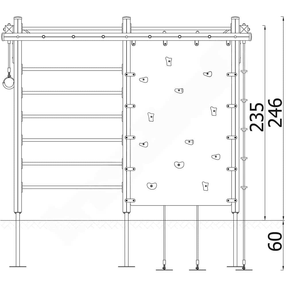 Die Quadro H Kletterkombi ist mehr als nur ein Spielgerät: Sie ist ein Ort, an dem Kinder spielerisch ihre Beweglichkeit und körperliche Fitness verbessern. Mit einer Kletterwand, Strickleiter, Kletterseil, Sprossenwand, Reckstange, Ringen und einem horizontalen Kletternetz bietet sie alles, was kleine Abenteurer benötigen. Die Kinder können ihre Geschicklichkeit trainieren und kreative Lösungen finden, um Hindernisse zu überwinden. Dabei wird nicht nur der Körper gefordert, sondern auch der Geist – denn Herausforderungen annehmen und meistern bedeutet, an sich selbst zu glauben!