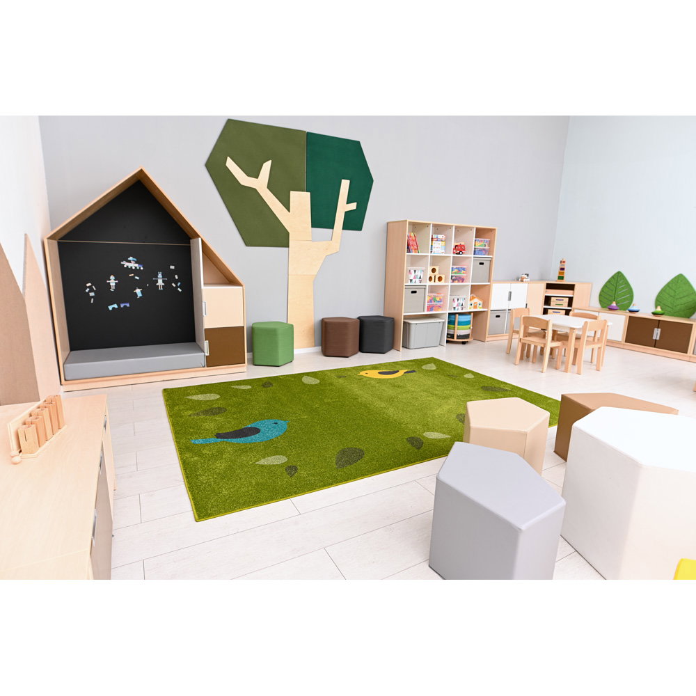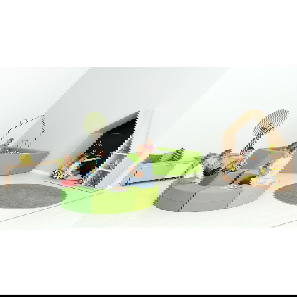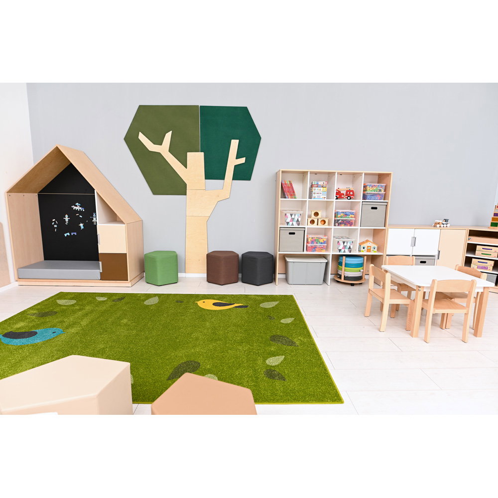 Ergänzen Sie den offenen Bereich einfach mit den separat erhältlichen Bodenmatten, um den Kindern einen weichen, geschützten Rückzugsort zum Lesen und Ausruhen zu bieten.