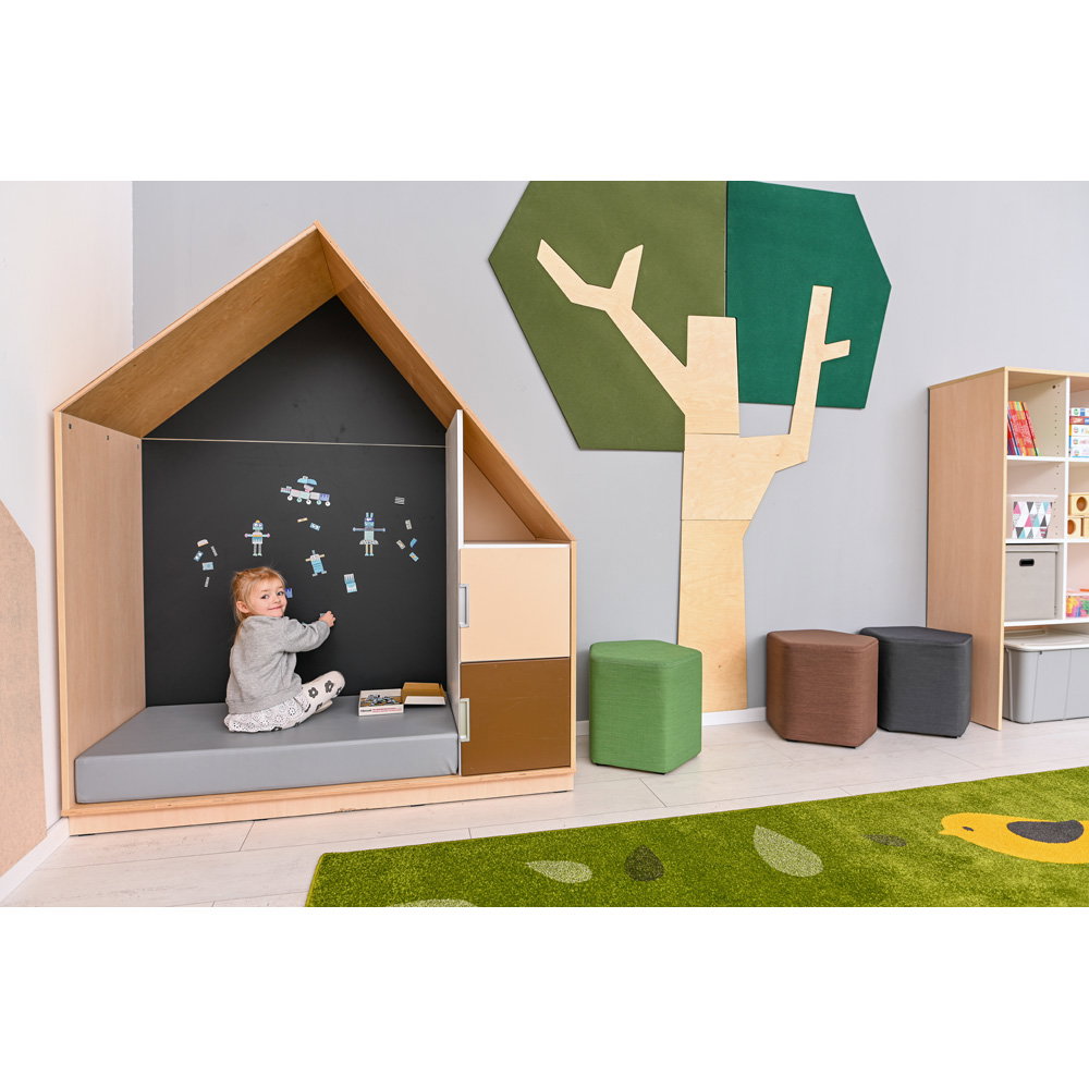 Bringen Sie Struktur und Spielspaß auf clevere Weise zusammen. Bereichern Sie Ihre Räumlichkeiten jetzt mit dem Quadro – Häuschen mit magnetischer Tafel.