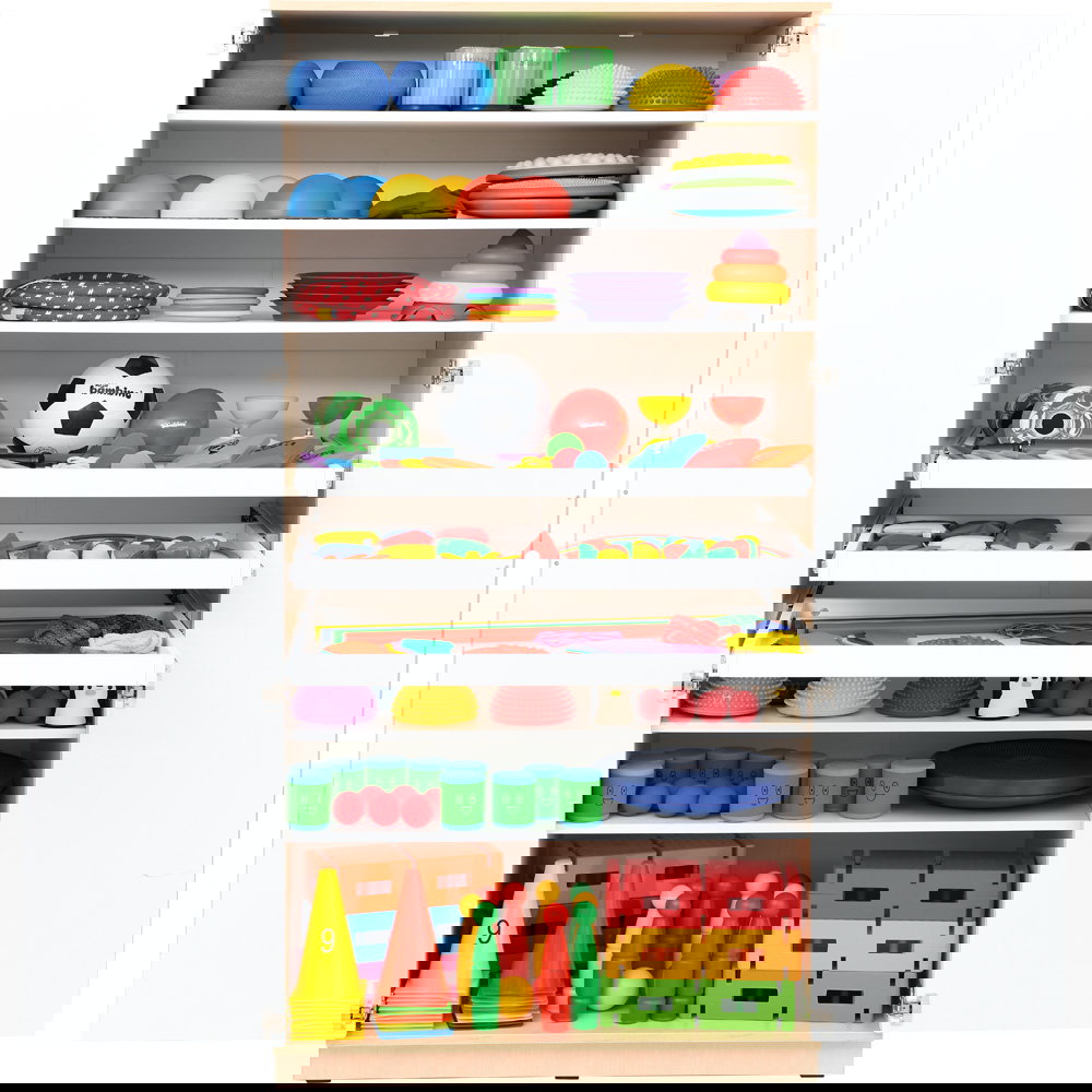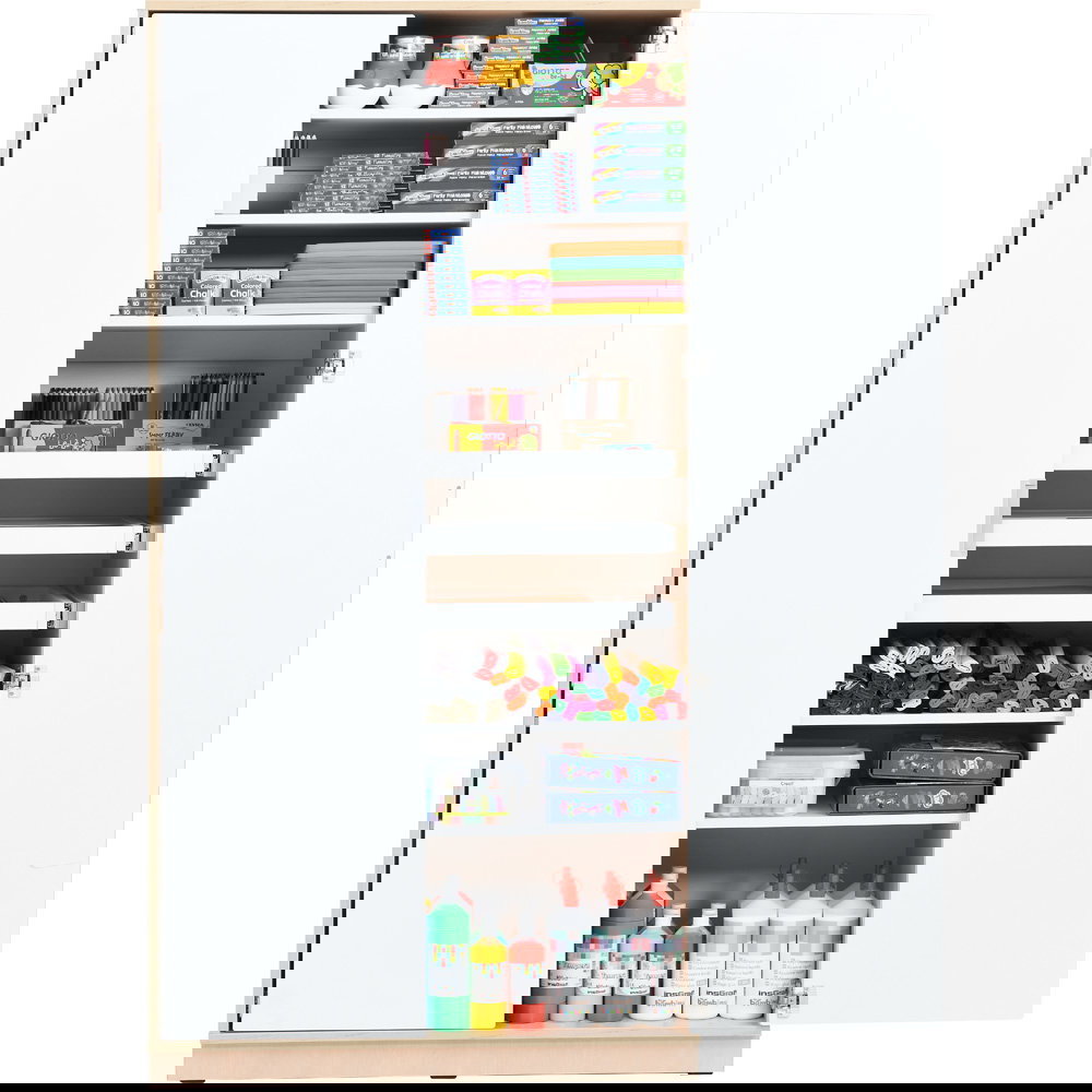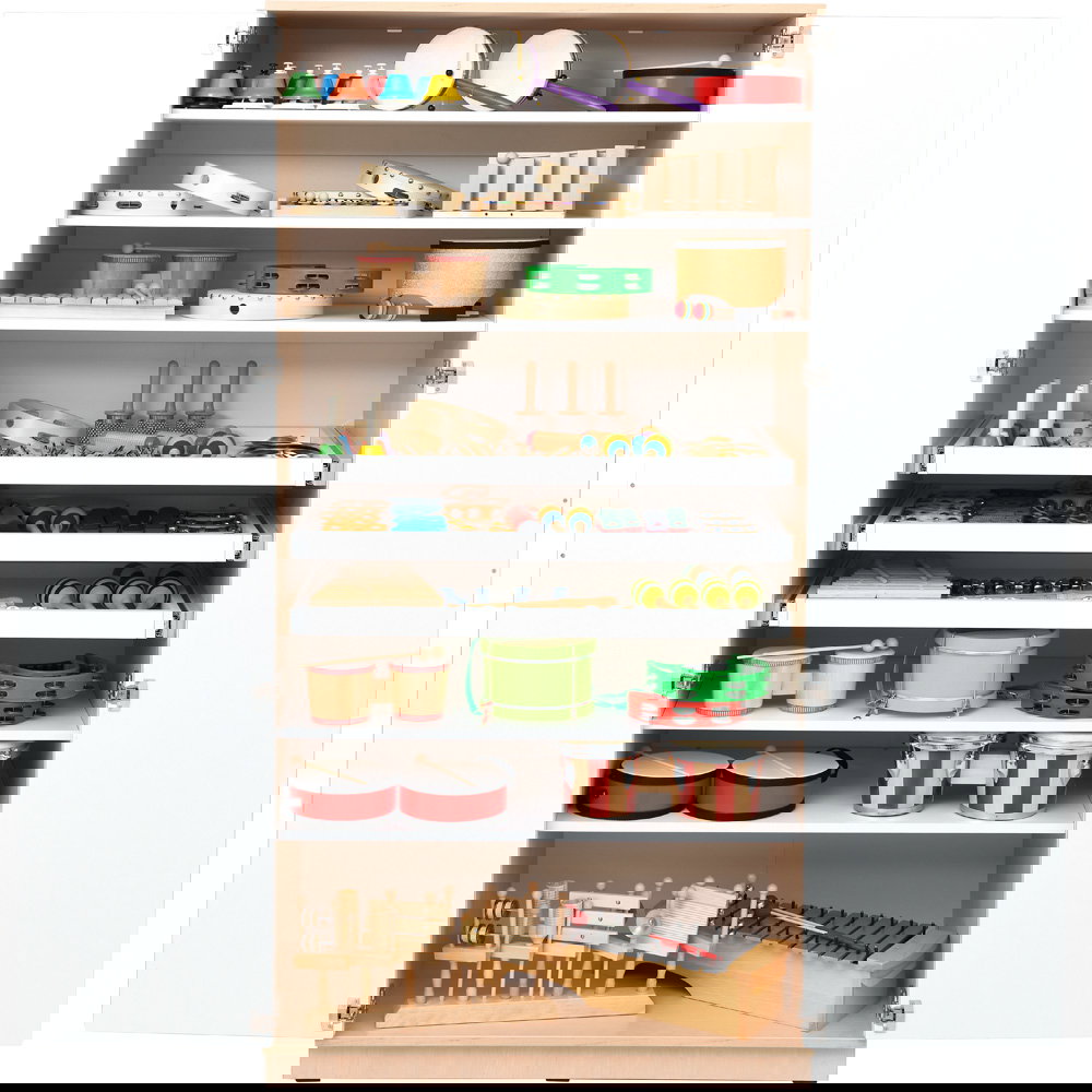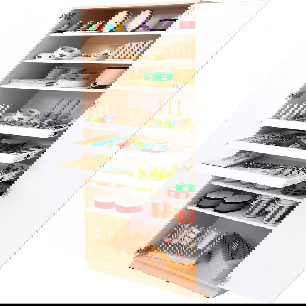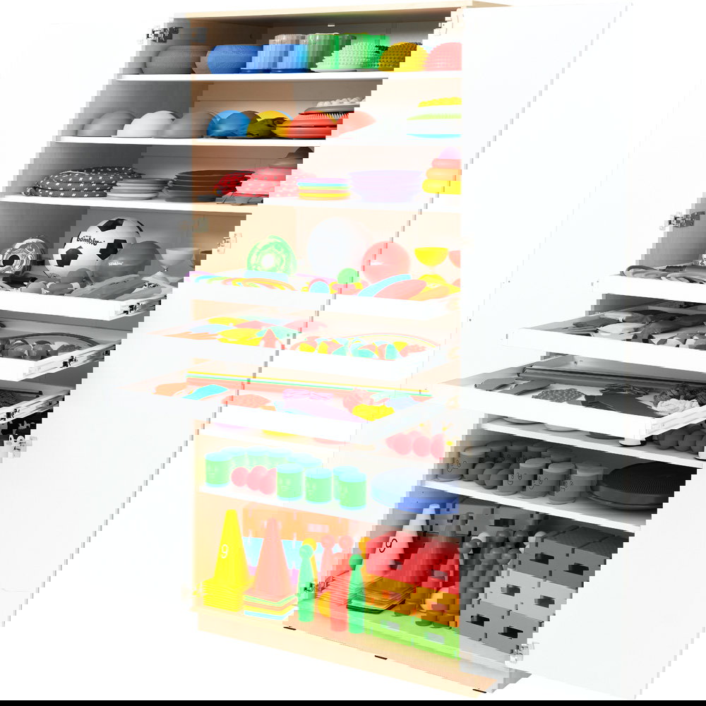 Mit einer Höhe von fast zwei Metern und einer Tiefe von 60 cm nutzt dieser Schrank den Raum optimal aus. Acht breite Böden bieten Platz für eine riesige Menge an Ordnern, Büchern, Spielen und Materialien aller Art. - Sichere und aufgeräumte Aufbewahrung