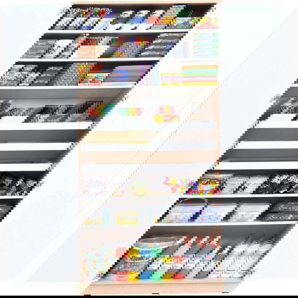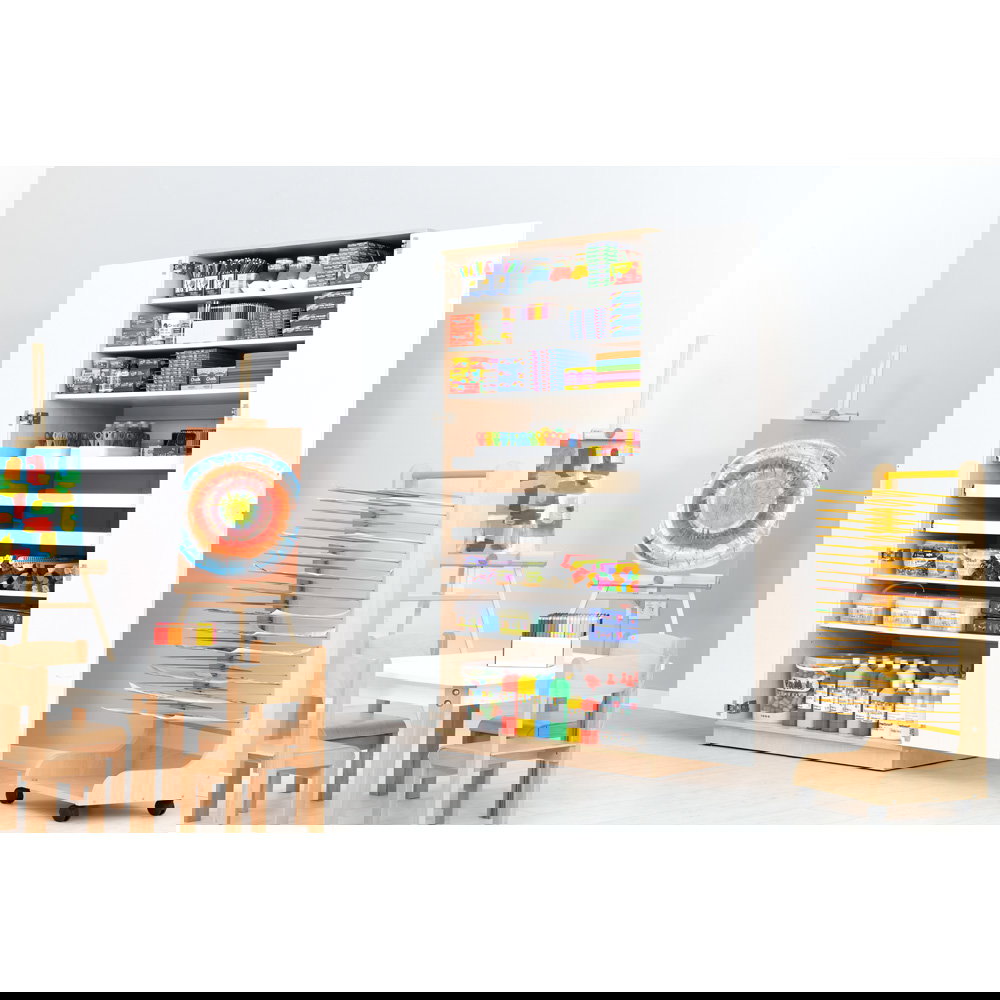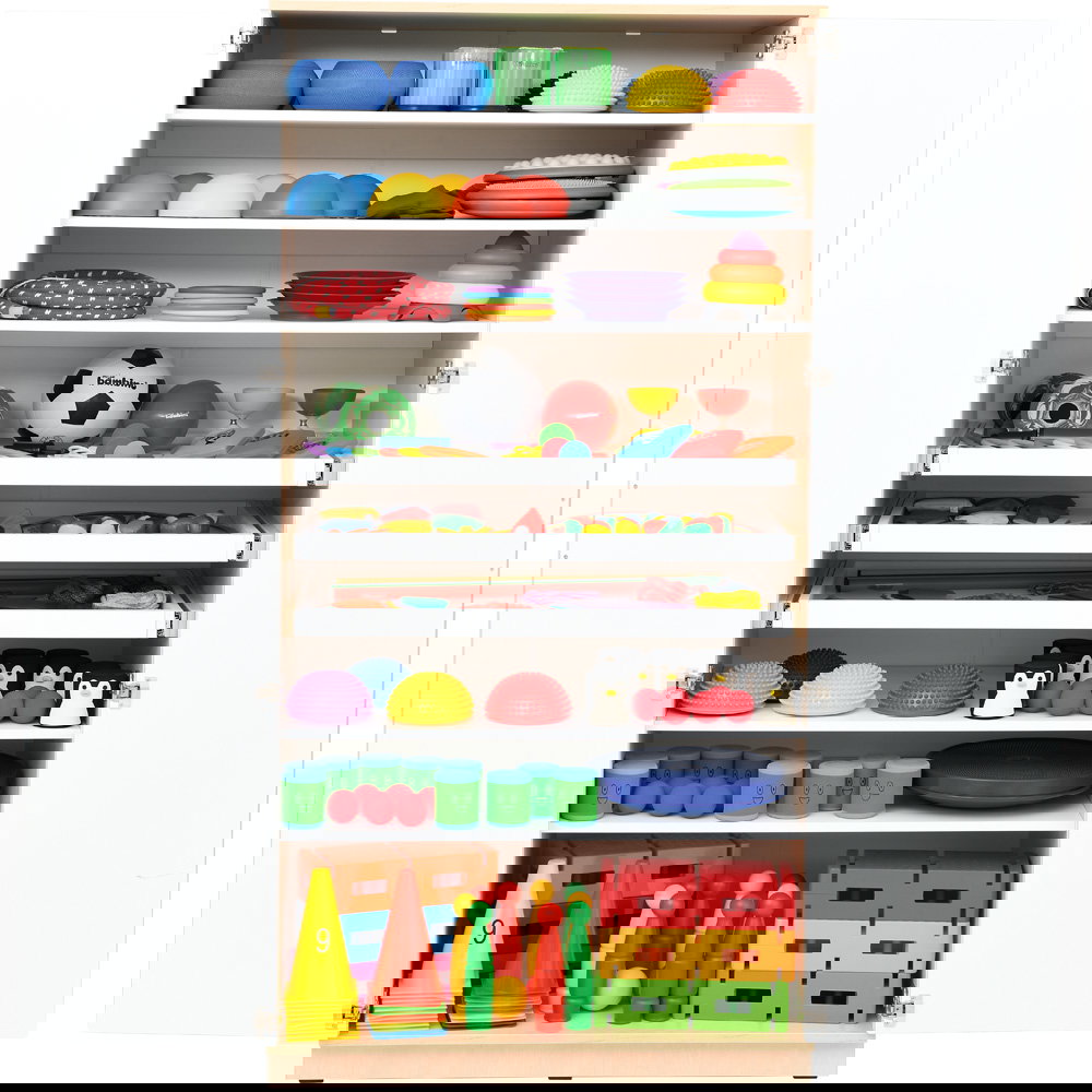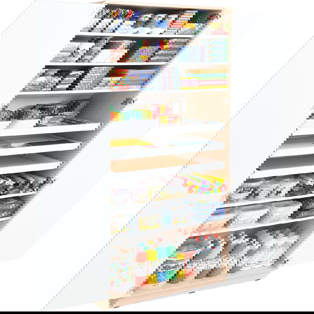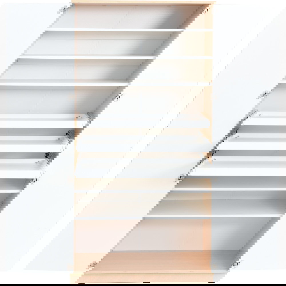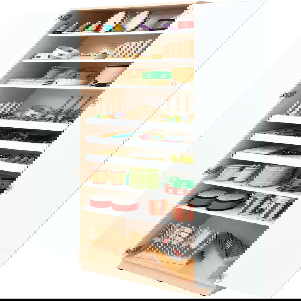 Mit einer Höhe von fast zwei Metern und einer Tiefe von 60 cm nutzt dieser Schrank den Raum optimal aus. Acht breite Böden bieten Platz für eine riesige Menge an Ordnern, Büchern, Spielen und Materialien aller Art. - Sichere und aufgeräumte Aufbewahrung