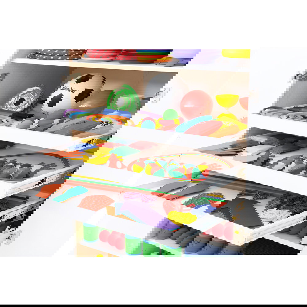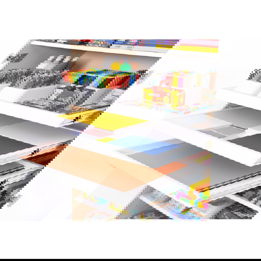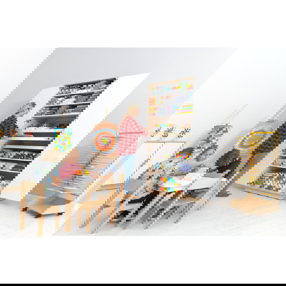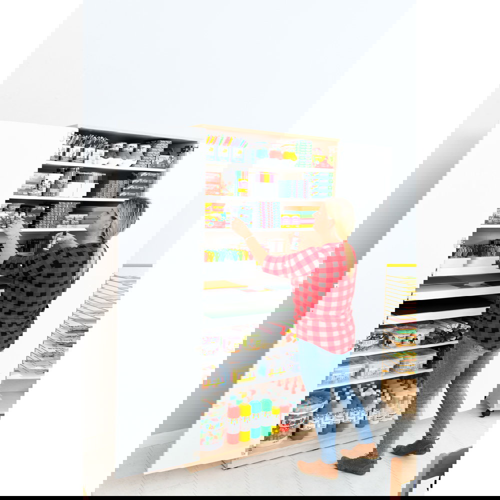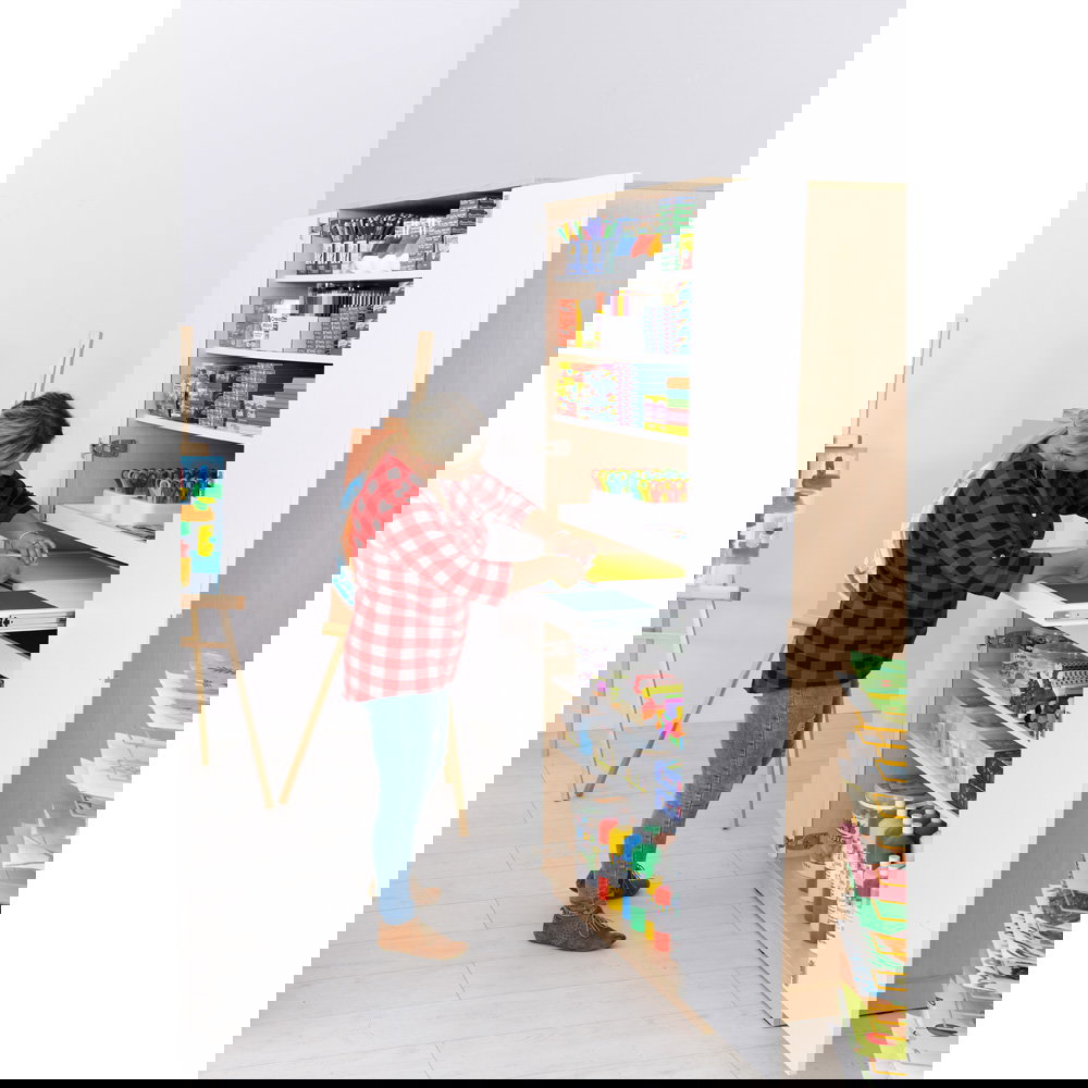 Mit einer Höhe von fast zwei Metern und einer Tiefe von 60 cm nutzt dieser Schrank den Raum optimal aus. Acht breite Böden bieten Platz für eine riesige Menge an Ordnern, Büchern, Spielen und Materialien aller Art. - Sichere und aufgeräumte Aufbewahrung
