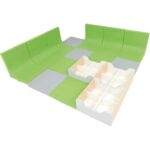 - 13 Matten: Diese Komponenten bieten eine Kombination aus Komfort und Funktionalität. Die Höhe der Lehnen beträgt 60 cm, ideal für das Anlehnen beim Schmökern. Insgesamt ist die Gesamtfläche der Leseecke B 240 x T 240 cm groß und bietet somit genügend Raum zum Entspannen.