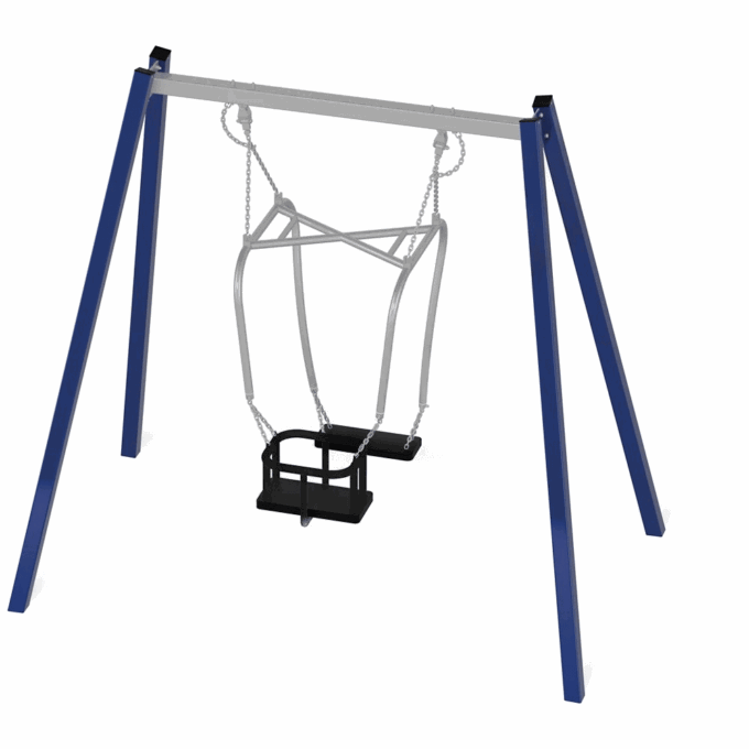 Die abgebildeten Schaukelsitze sind nur symbolisch. Die Schaukel wird immer als Set mit dem Eltern-Kind-Sitz angeboten, da dieser eine besondere Gestellbreite benötigt.