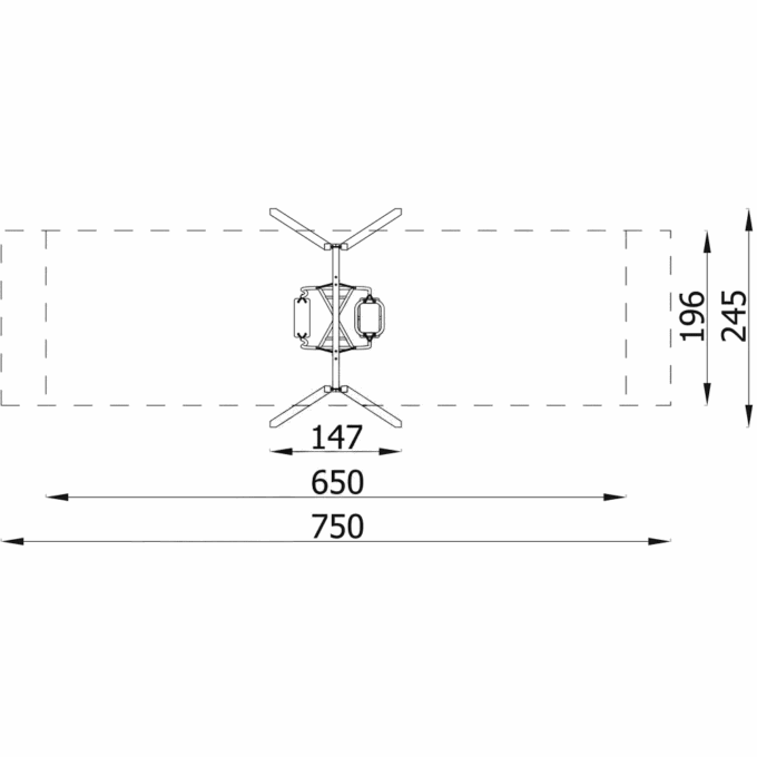 - Sicherheitsbereich: 196 x 750 cm (Fläche: 15 m²)