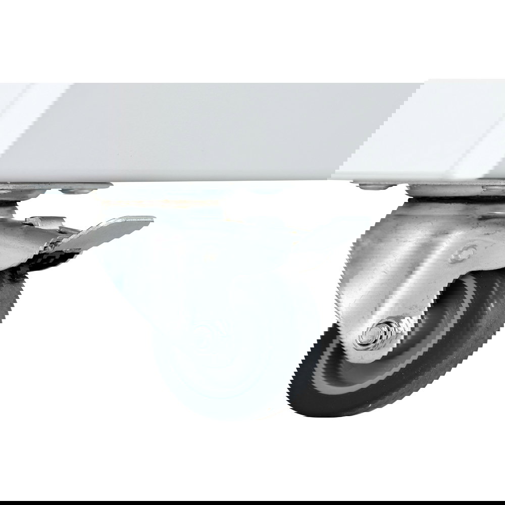 Ausgestattet mit leichtgängigen Rollen, lässt sich der Wagen auch voll beladen ohne großen Kraftaufwand bewegen. Das macht ihn zum idealen Begleiter für wechselnde Aktivitäten in verschiedenen Räumen. Für die nötige Sicherheit am Einsatzort sorgen die feststellbaren Rollen, die ein ungewolltes Wegrollen zuverlässig verhindern.