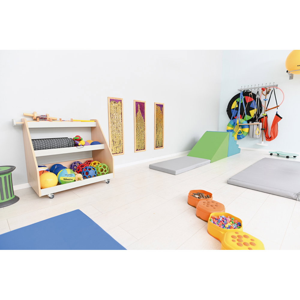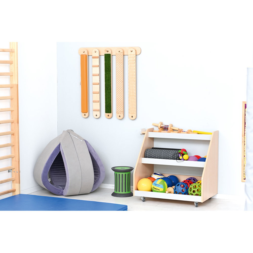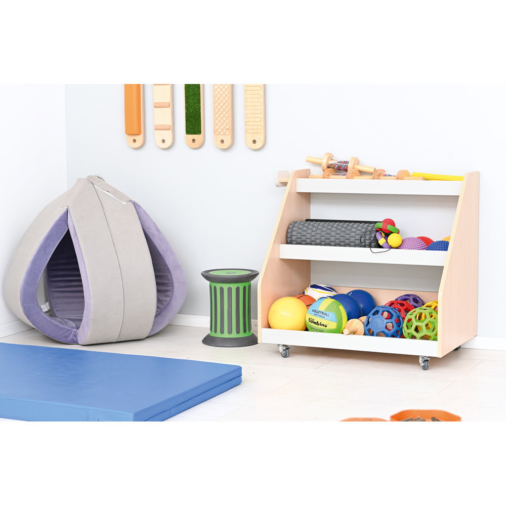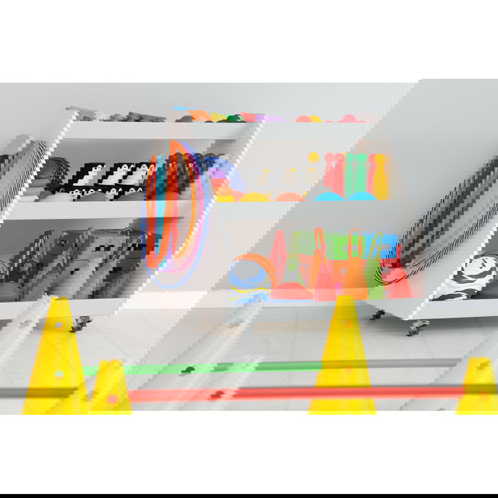 Dieses mobile Regal wurde entwickelt, um den Alltag spürbar zu erleichtern. Ob Bälle für den Sportunterricht, Bastelmaterialien für den Kreativnachmittag oder Spielzeug für die freie Spielzeit – auf den drei großzügigen Böden findet alles seinen Platz. Dank der robusten Rollen bringen Sie alle Utensilien mit Leichtigkeit dorthin, wo sie gebraucht werden, und schaffen so eine flexible und aufgeräumte Lern- und Spielumgebung.
