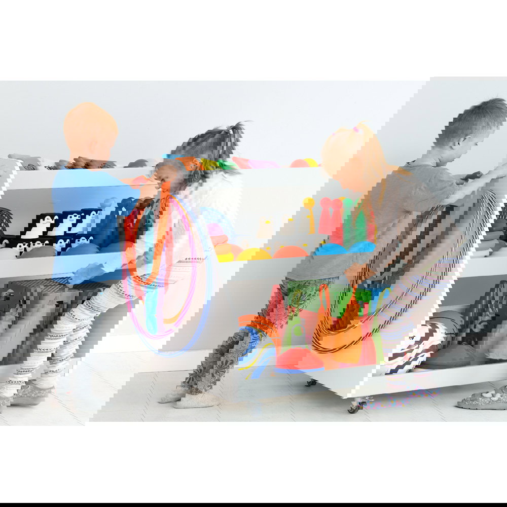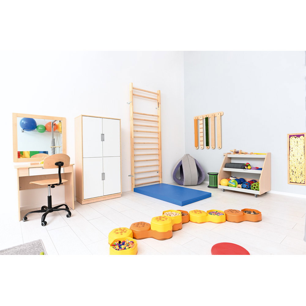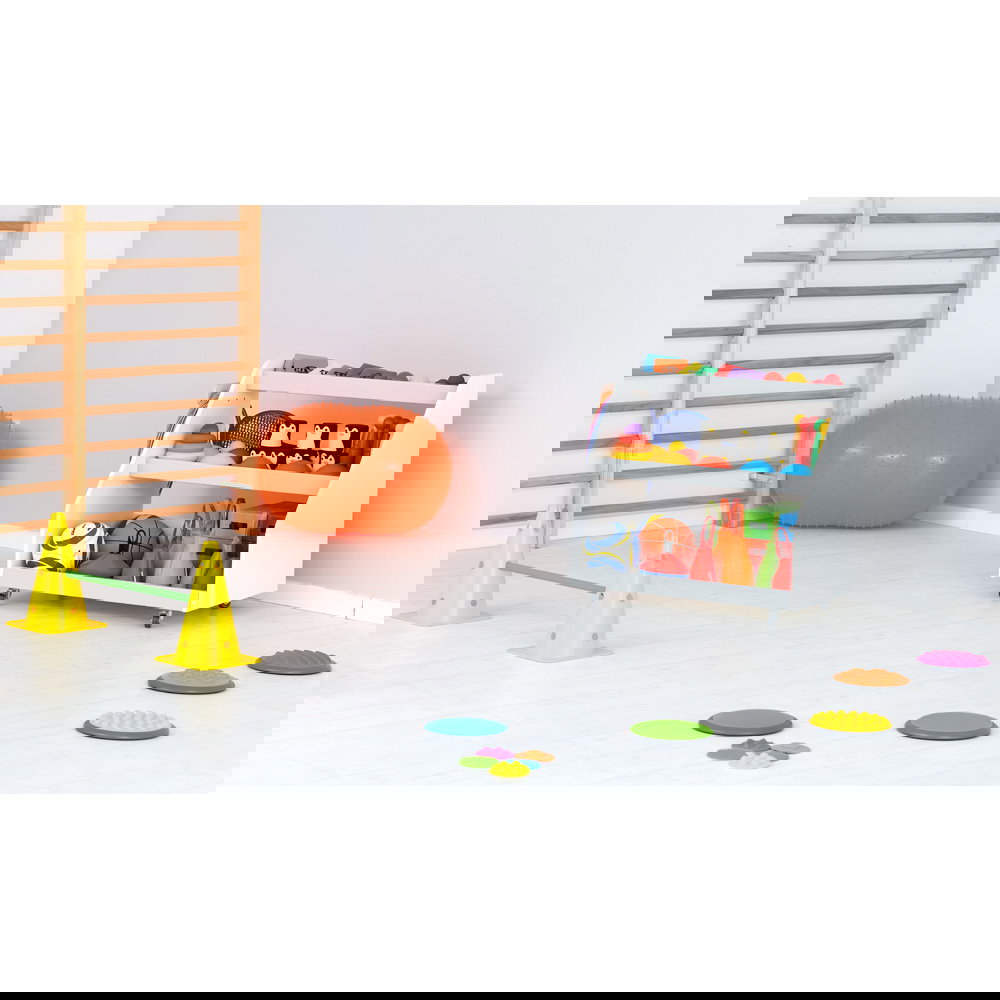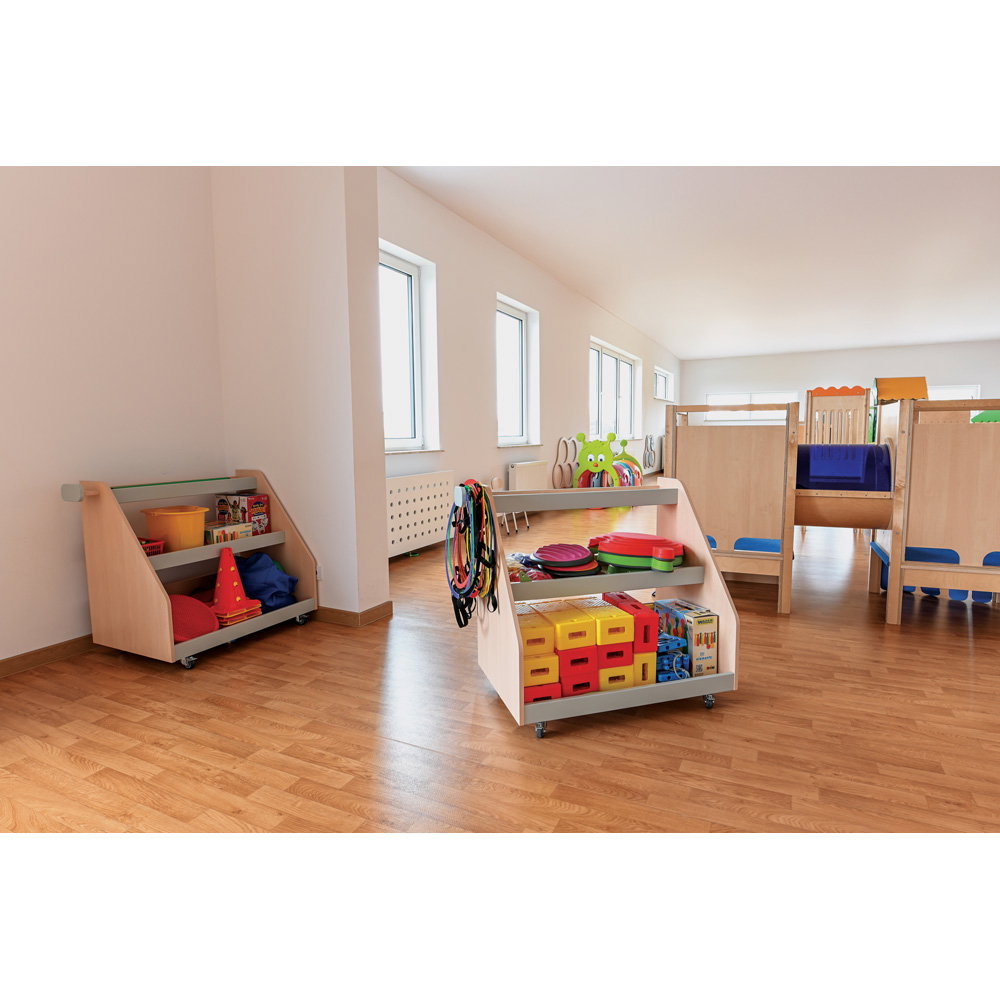 Dieses mobile Regal wurde entwickelt, um den Alltag spürbar zu erleichtern. Ob Bälle für den Sportunterricht, Bastelmaterialien für den Kreativnachmittag oder Spielzeug für die freie Spielzeit – auf den drei großzügigen Böden findet alles seinen Platz. Dank der robusten Rollen bringen Sie alle Utensilien mit Leichtigkeit dorthin, wo sie gebraucht werden, und schaffen so eine flexible und aufgeräumte Lern- und Spielumgebung.